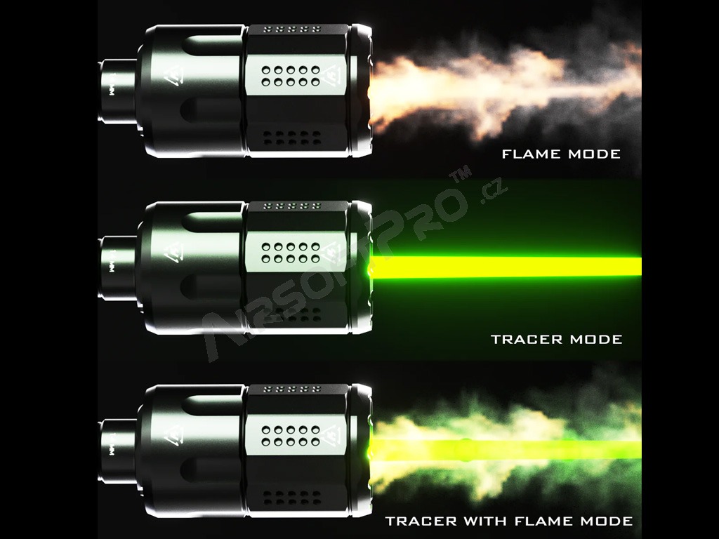 The tracer offers 3 modes - flame mode, tracer mode, tracer with flame mode and drag light.