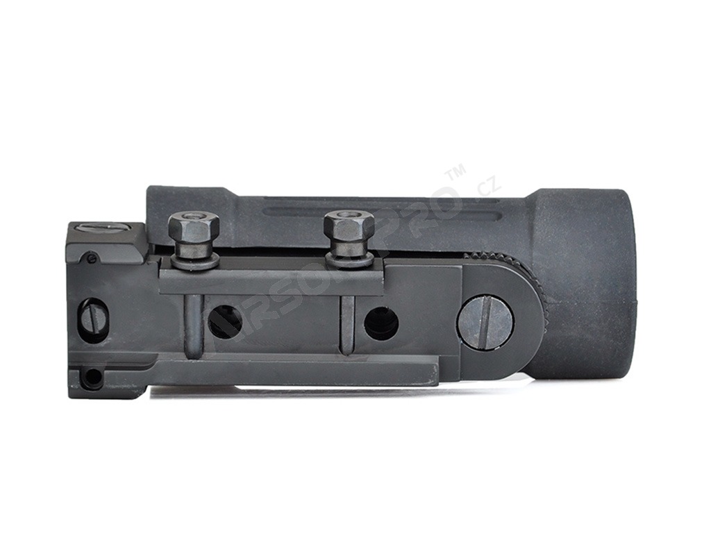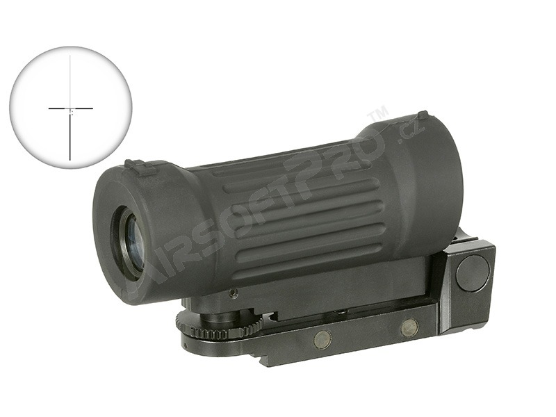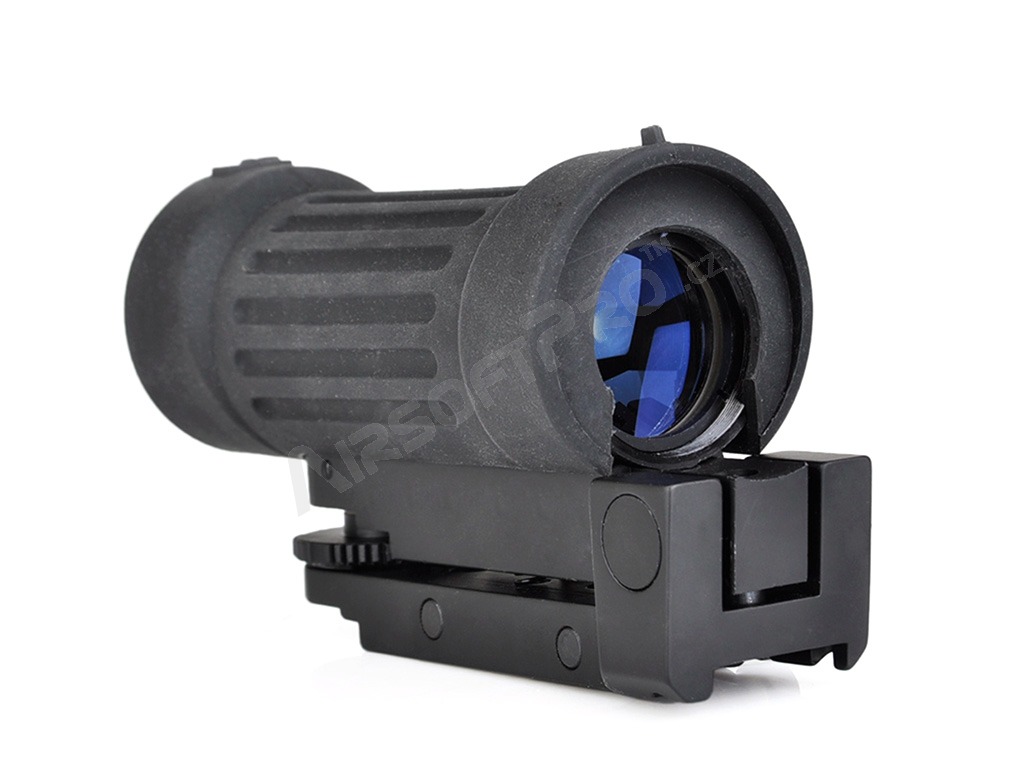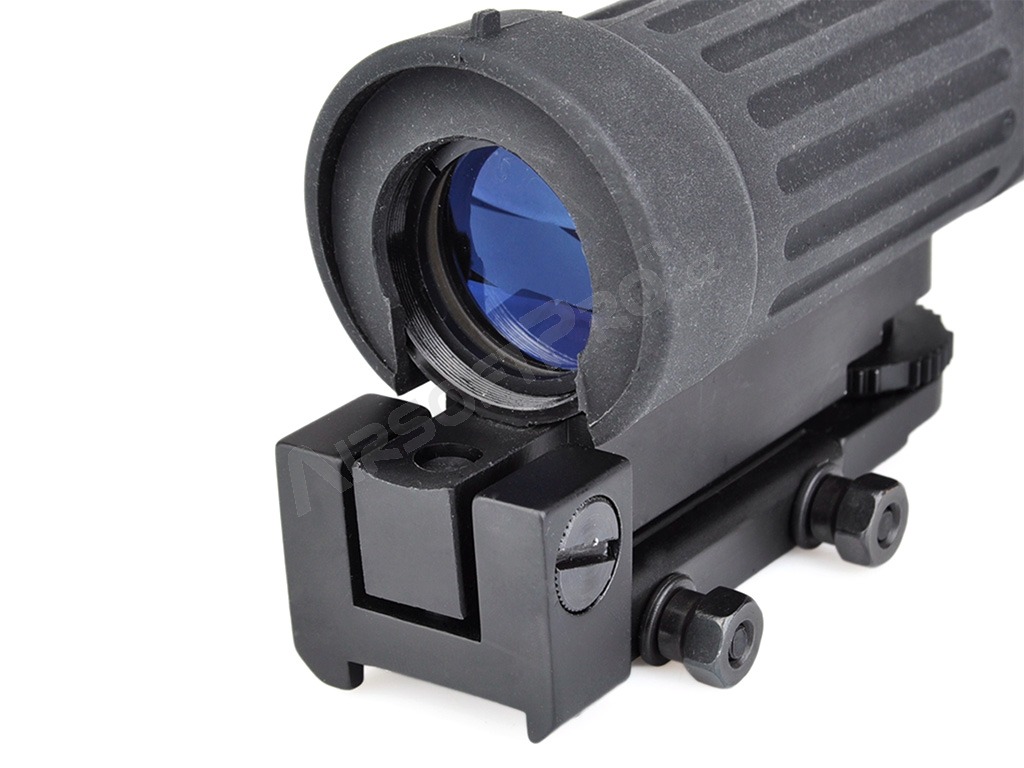 Luneta are o mărire fixă de 4x. Vizorul deschis, inclusiv vizorul frontal și cel din spate, sunt situate în partea superioară a carcasei de cauciuc. Crucea de vizare poate fi reglată atât vertical, cât și orizontal. Acesta este instalat pe șina RIS.