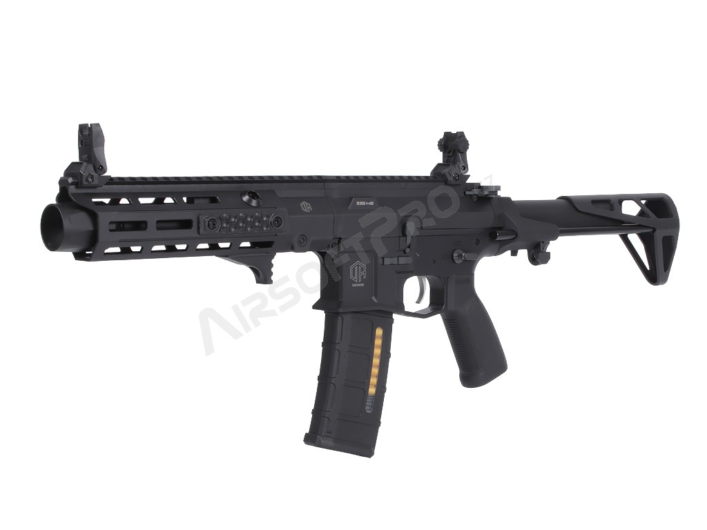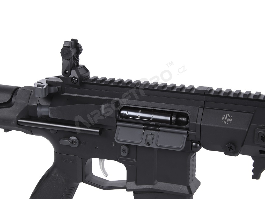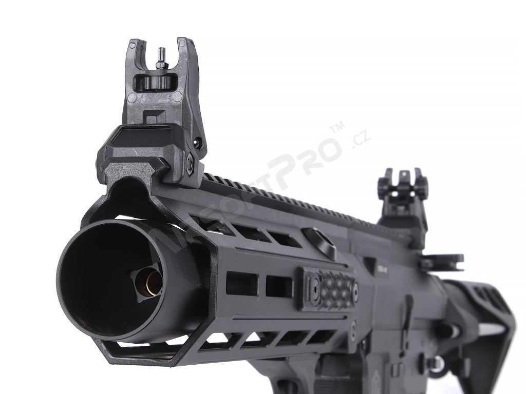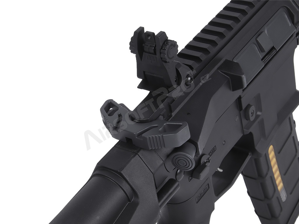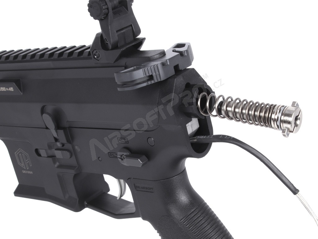 Corpul ușor din polimer cu părți metalice menține greutatea totală plăcut scăzută - doar 2,26 kg - fiind în același timp suficient de durabil pentru desfășurările de airsoft de luptă. Crosa retractabilă ușoară ajustează lungimea de la 622-735 mm (4 poziții), vizorul rabatabil permite utilizarea ușoară a unui colimator, iar antebrațul M-LOK oferă spațiu pentru montarea modulară. Comutatorul de tragere ambidextru, maneta modernă de armare a șurubului și opritorul funcțional al șurubului asigură o manevrare confortabilă. Amplificatorul de sunet eficient din aluminiu adaugă un efect acustic puternic atunci când se trage.