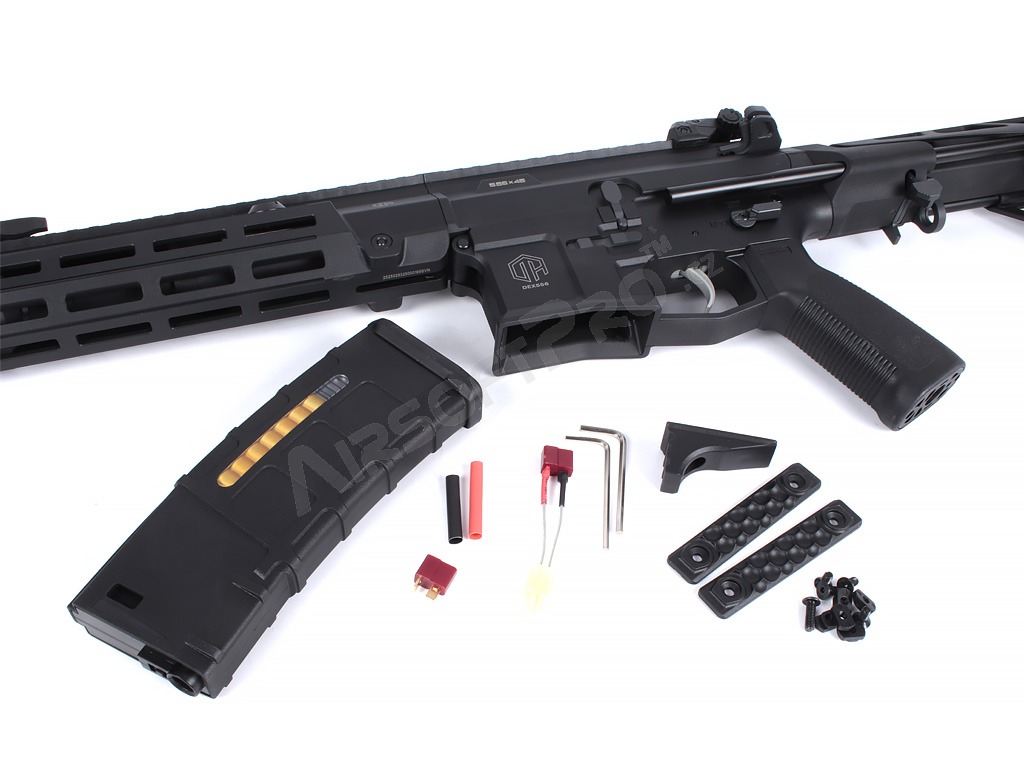 Arma este compatibilă cu o baterie de 11,1 V chiar din cutie; un adaptor de conector Dean-T la Tamiya mic este inclus pentru conectarea ușoară a bateriilor obișnuite. De asemenea, este inclus un încărcător de tip PMAG cu imitații de cartușe (împingător) cu o capacitate de 180 de cartușe.