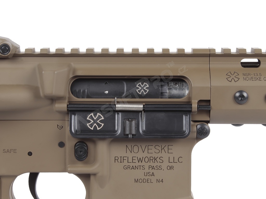 Pușcă airsoft NOVESKE NSR 13,5", Gen.3, ETU, Platinum - FDE [CYMA] Noveske Rifleworks este un nume emblematic în industria americană a armelor de foc, cunoscut pentru calitatea și designul său inovator. N4 este pușca lor emblematică bazată pe platforma AR-15, care este preferată de unități de elită precum Navy SEALS (DEVGRU) pentru compactitatea și fiabilitatea sa.