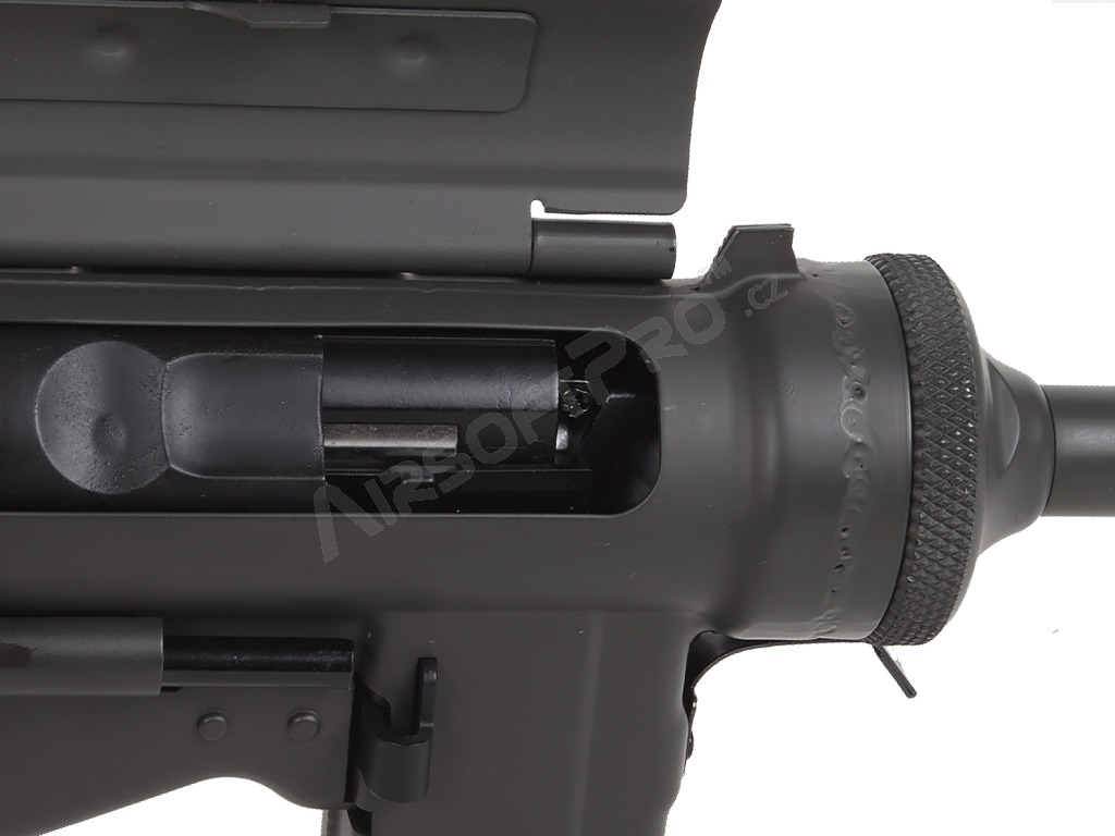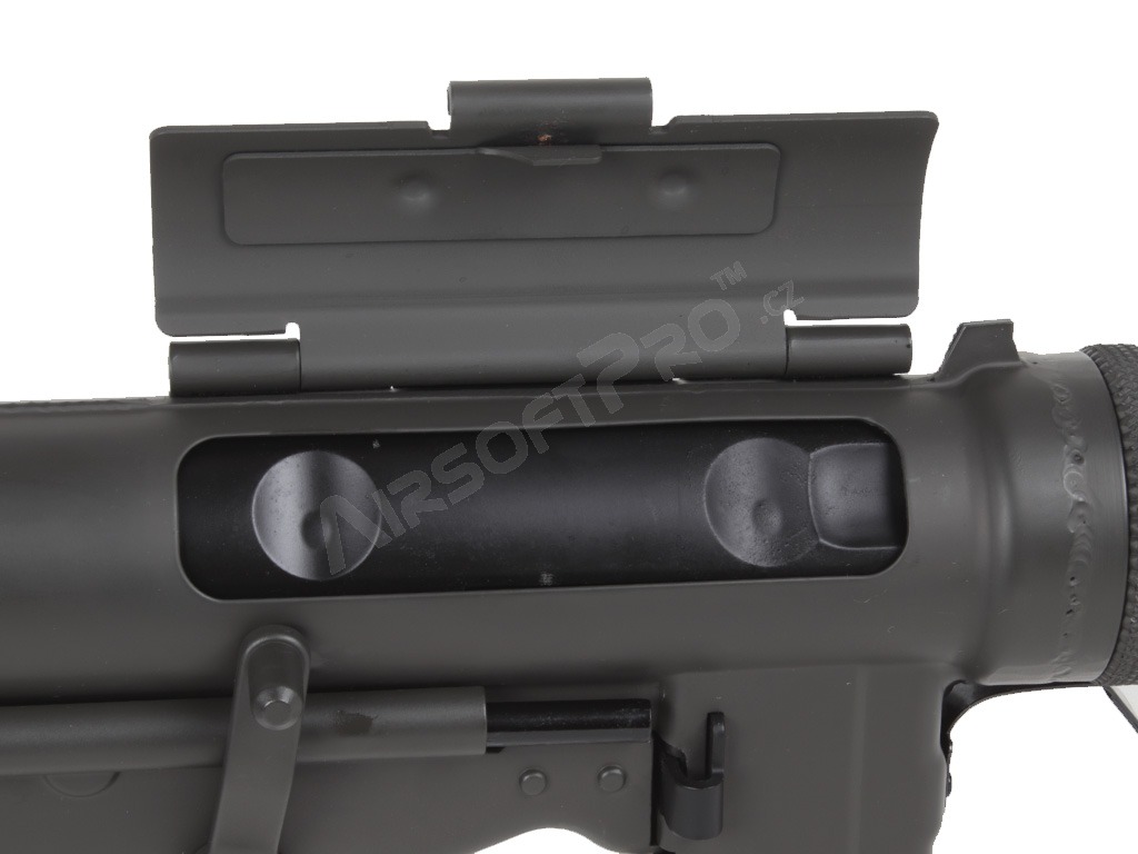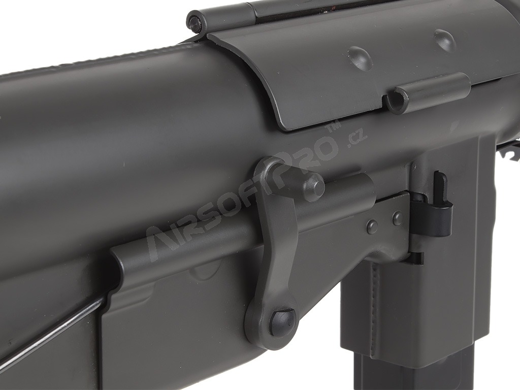 Producătorul a rezolvat în mod interesant depozitarea bateriei, care este situată în stoc. Acesta poate fi accesat prin îndepărtarea capacului din partea de jos a gărzii de mână (conector Mini Tamiya). Siguranța declanșatorului este, de asemenea, proiectată interesant, unde mânerul de armare a șurubului din partea dreaptă funcționează ca o siguranță. Arma trage în modul cu doză automată cu o viteză a gurii de 100 m/s.