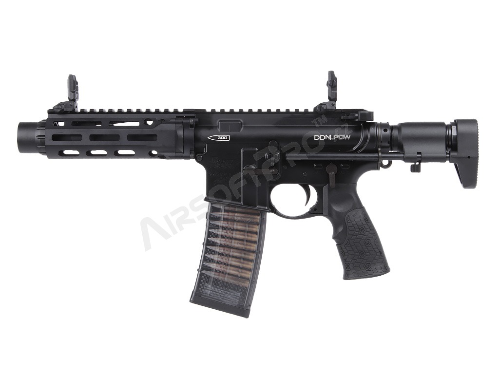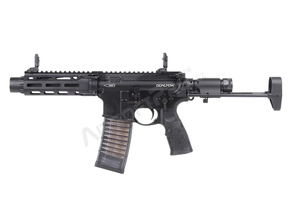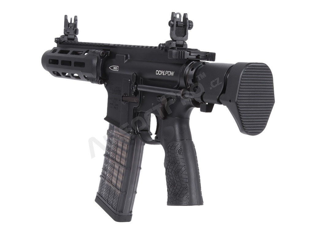 Pușcă Airsoft GBB Daniel Defense PDW MFR XL, gaz blowback CGS - negru [CYMA] Platforma AR-15, proiectată inițial de ArmaLite, a suferit nenumărate evoluții de-a lungul anilor și a devenit o alegere indispensabilă pentru forțele militare și de poliție, precum și pentru entuziaștii civili din întreaga lume. Varianta PDW cu antebraț licențiat Daniel Defense este unul dintre cele mai emblematice modele utilizate de forțele speciale.