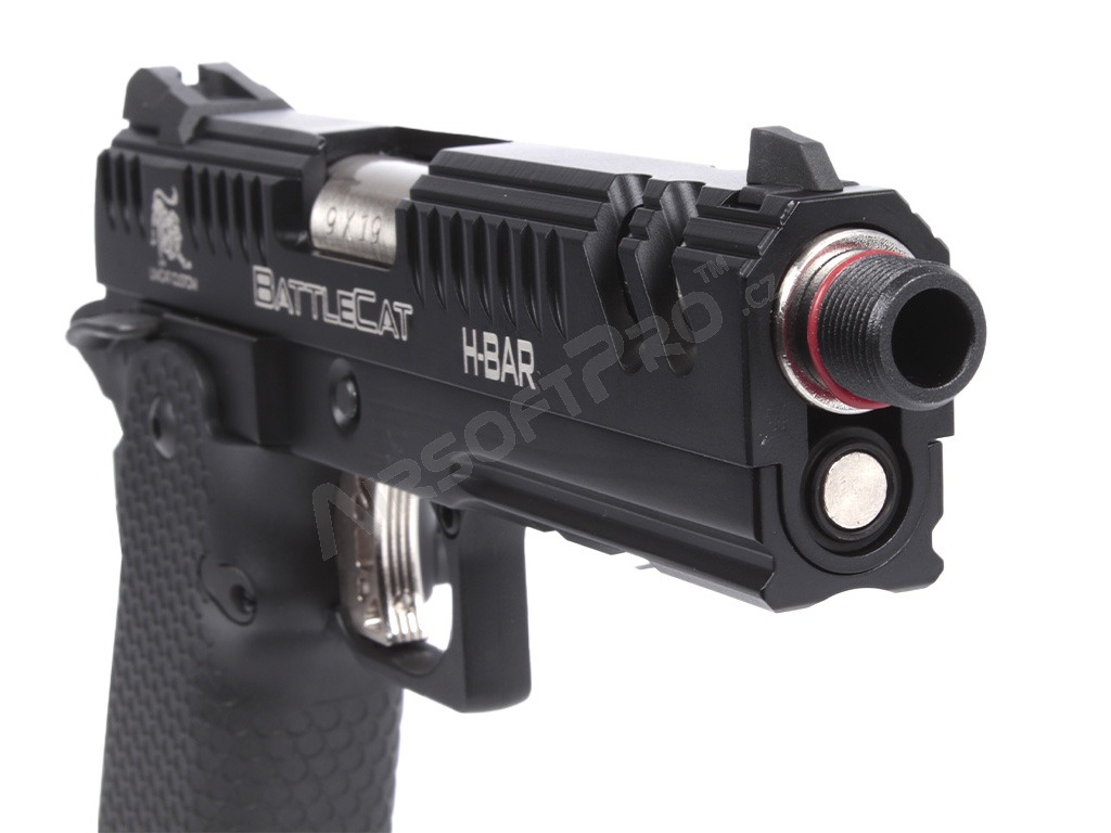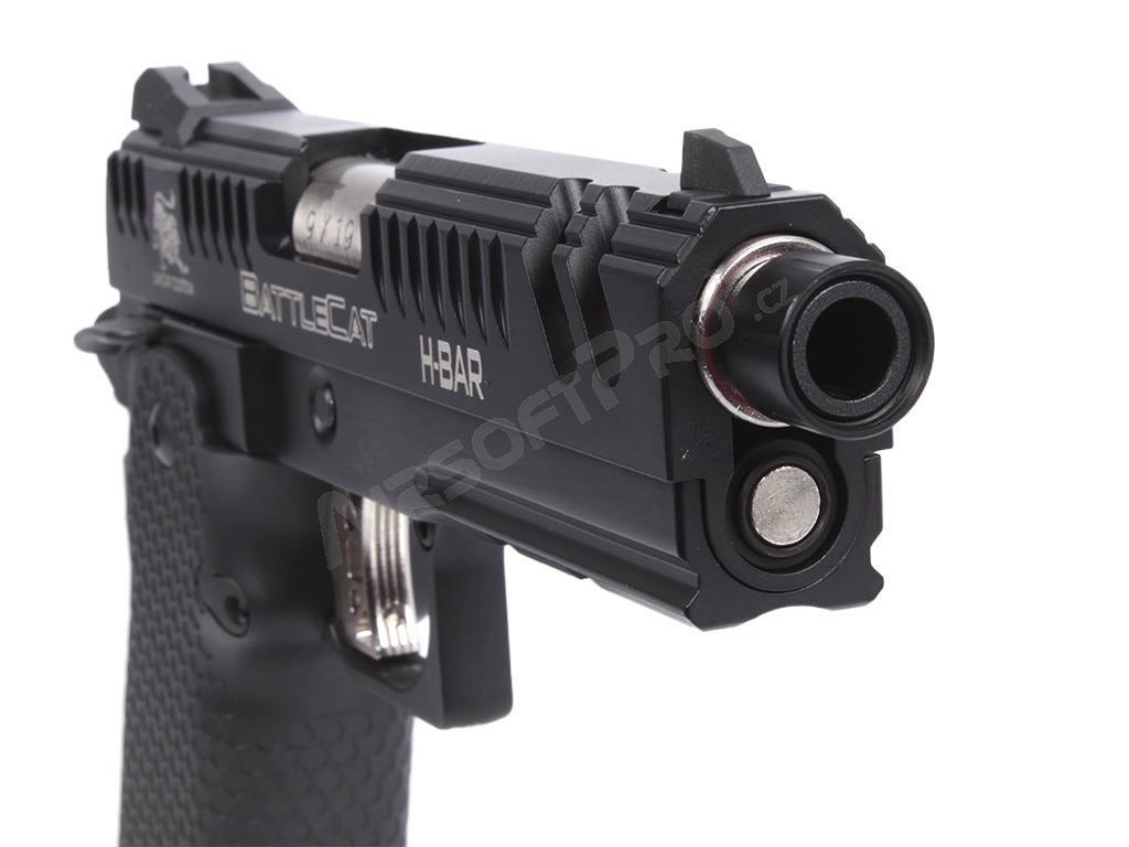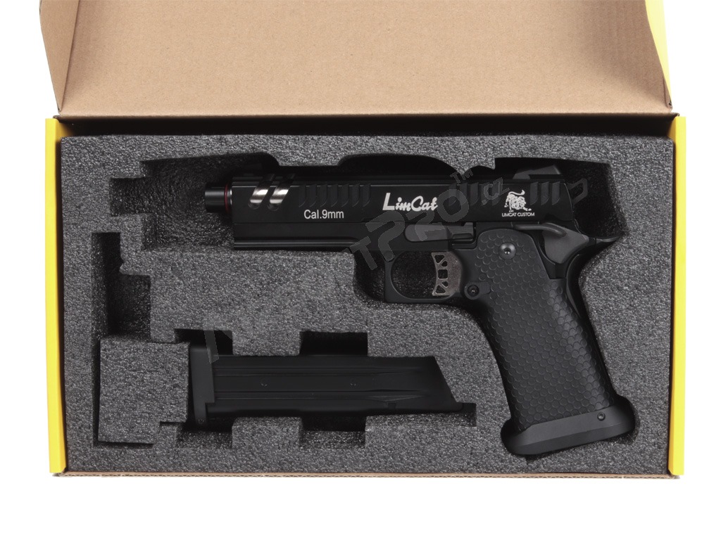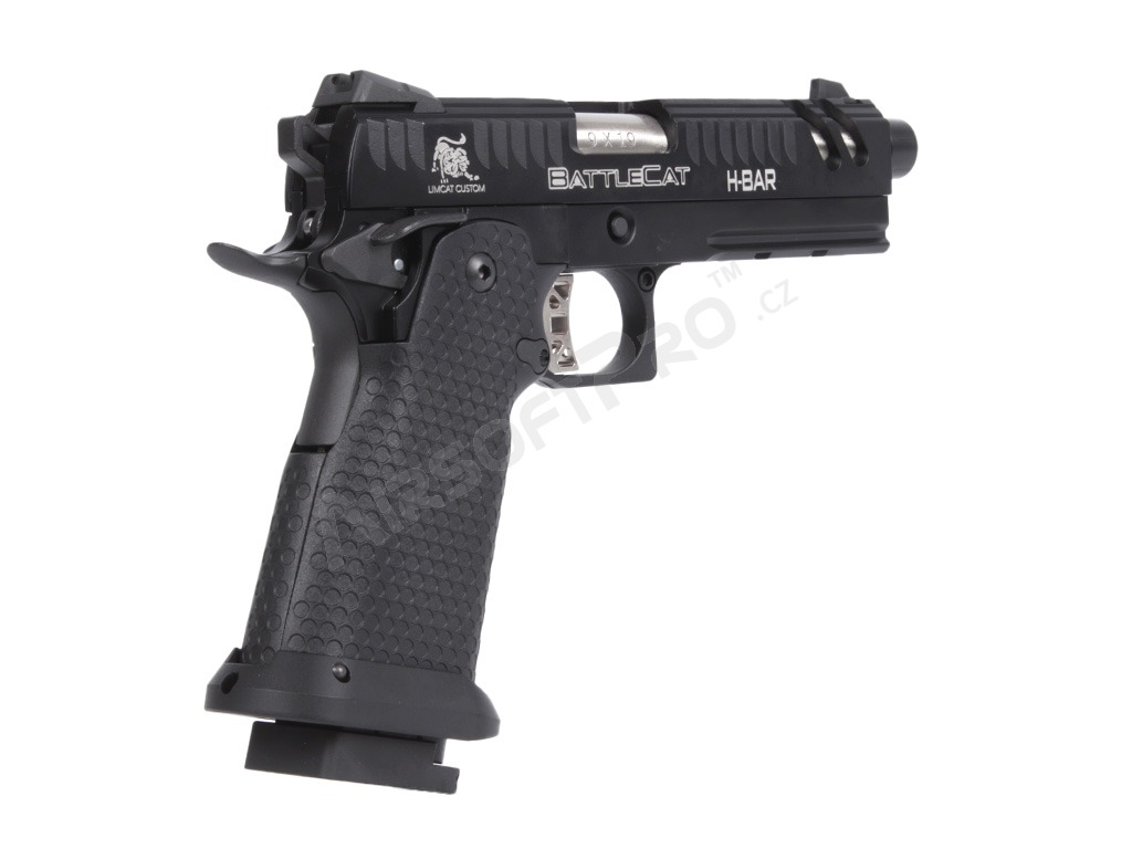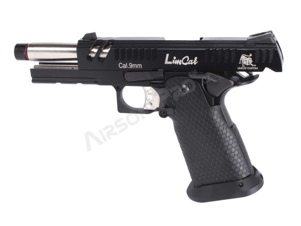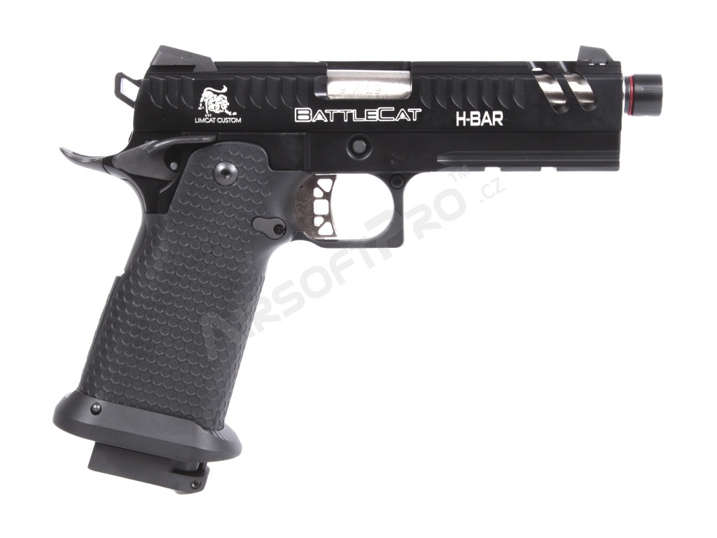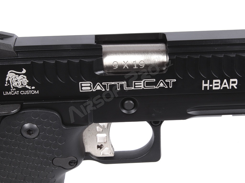 Glisiera și rama sunt prelucrate CNC din metal, asigurând o durabilitate ridicată și o îmbinare precisă. Pe culată sunt gravate cu laser marcajele "Limcat" și "Battlecat", care accentuează aspectul premium al modelului. Pistolul este pregătit pentru un amortizor sau compensator datorită adaptorului de 14 mm (stânga). Țeava exterioară are un filet intern de M11x1.