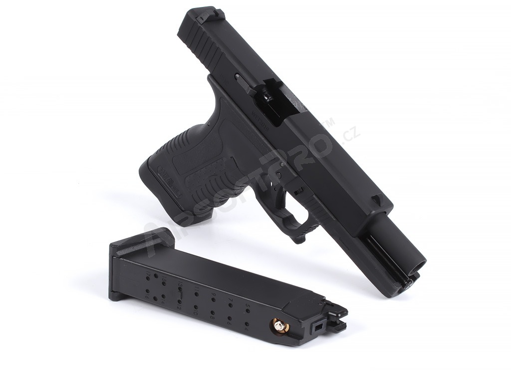 Pistol airsoft GP1799A - GBB, glisieră metalică neagră, cadru negru [WE]