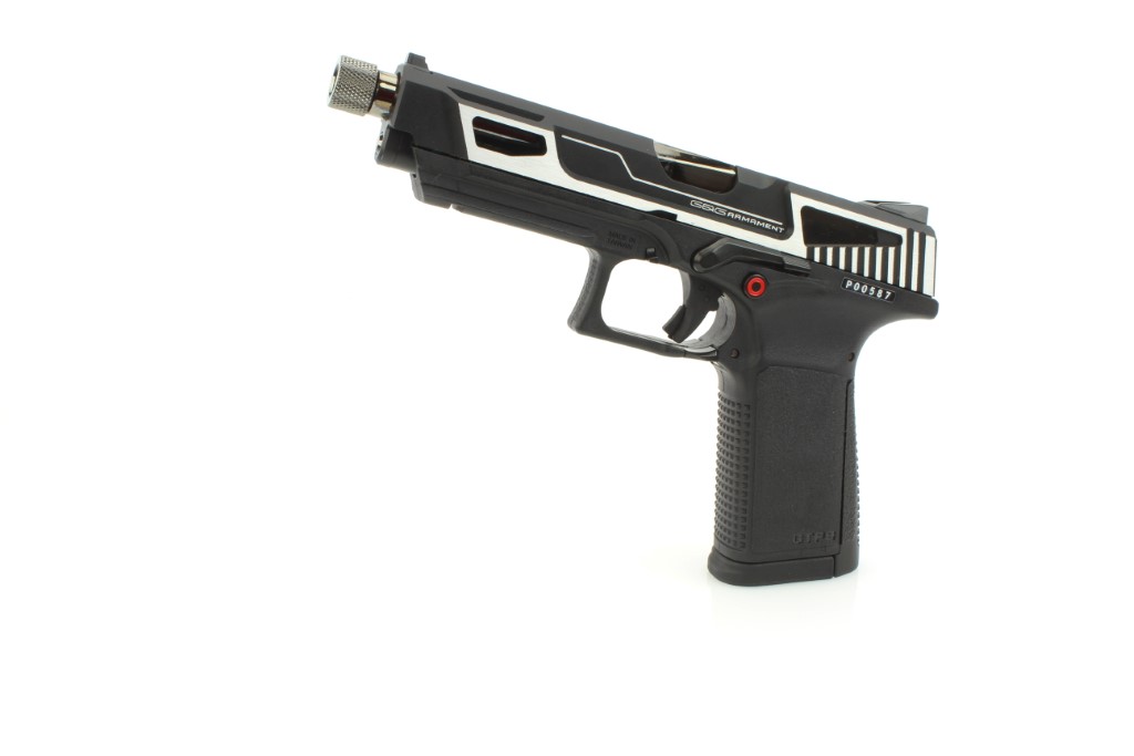 Este o armă care nu are un predecesor realist, dar se bazează pe conceptul de pistoale moderne și aduce toate avantajele și avantajele acestora. Câteva exemple pentru toți: spate de prindere interschimbabil, dezasamblare ușoară, prinderea încărcătorului integrată în arc, ergonomie excelentă. Pe pistol găsim și un filet pentru amortizor, care are un diametru de 12mm.