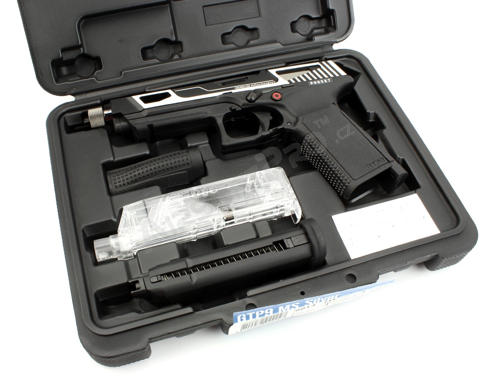 Pistol airsoft GTP9 MS, glisieră CNC cu gaz de refulare (GBB) - argintiu