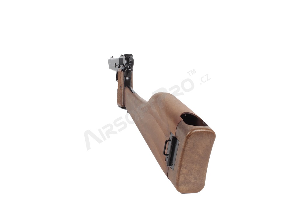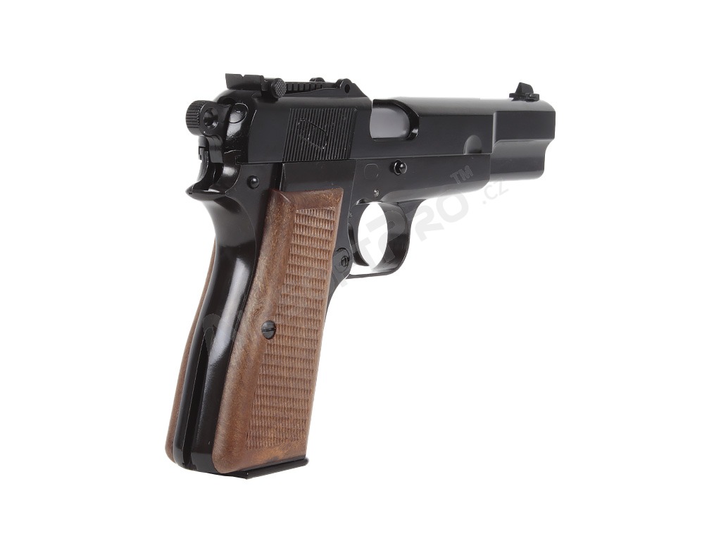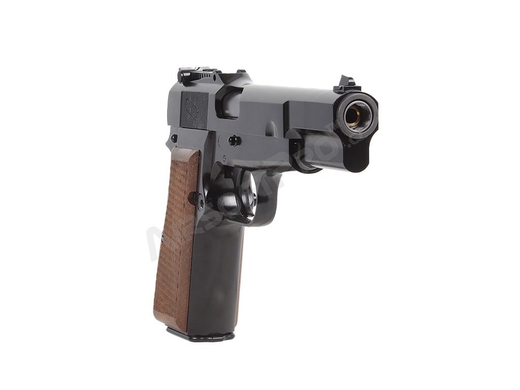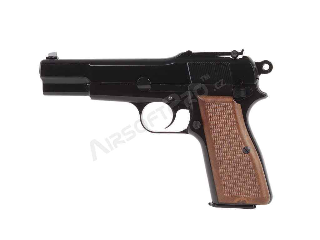 Versiunea airsoft a pistolului Browning Hi-power M1935 cu stoc suplimentar este o replică perfect detaliată și complet metalică în finisaj negru.