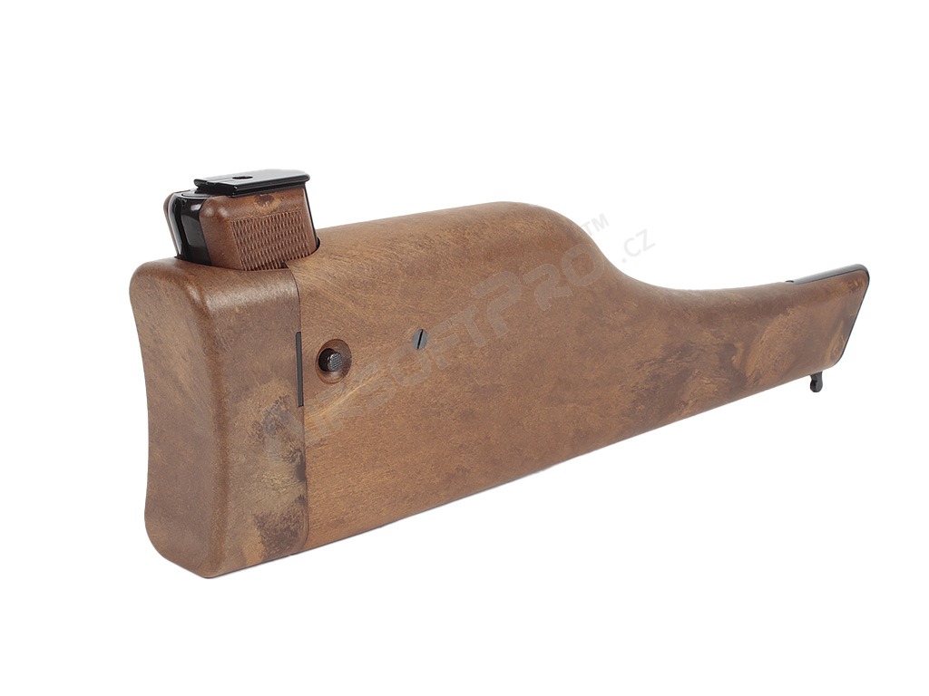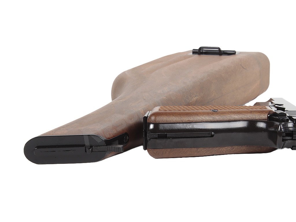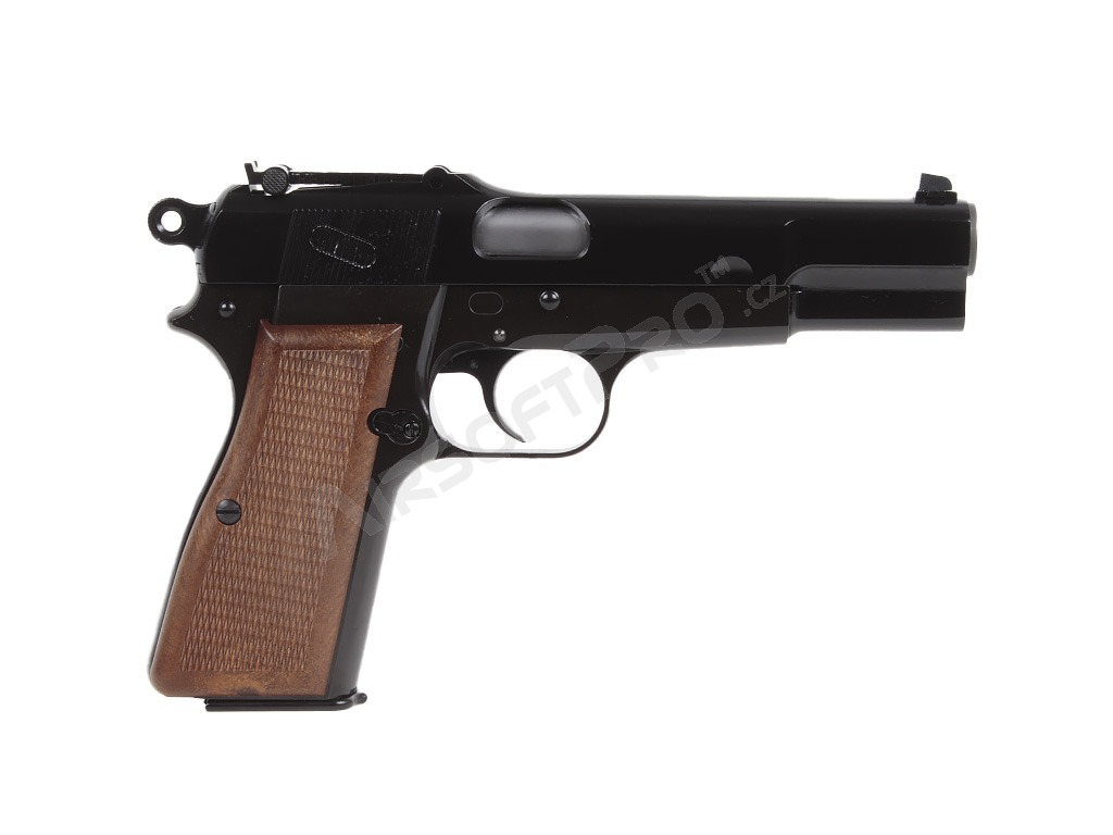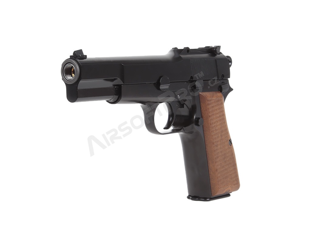 Versiunea airsoft a pistolului Browning Hi-power M1935 cu stoc suplimentar este o replică perfect detaliată și complet metalică în finisaj negru.