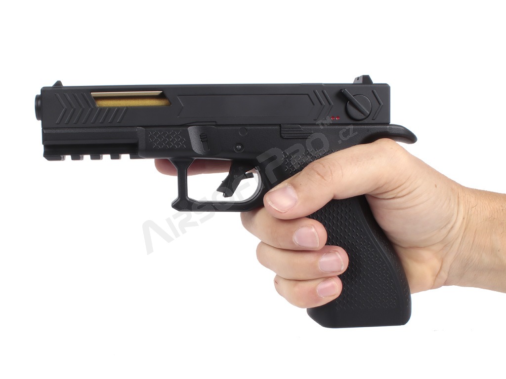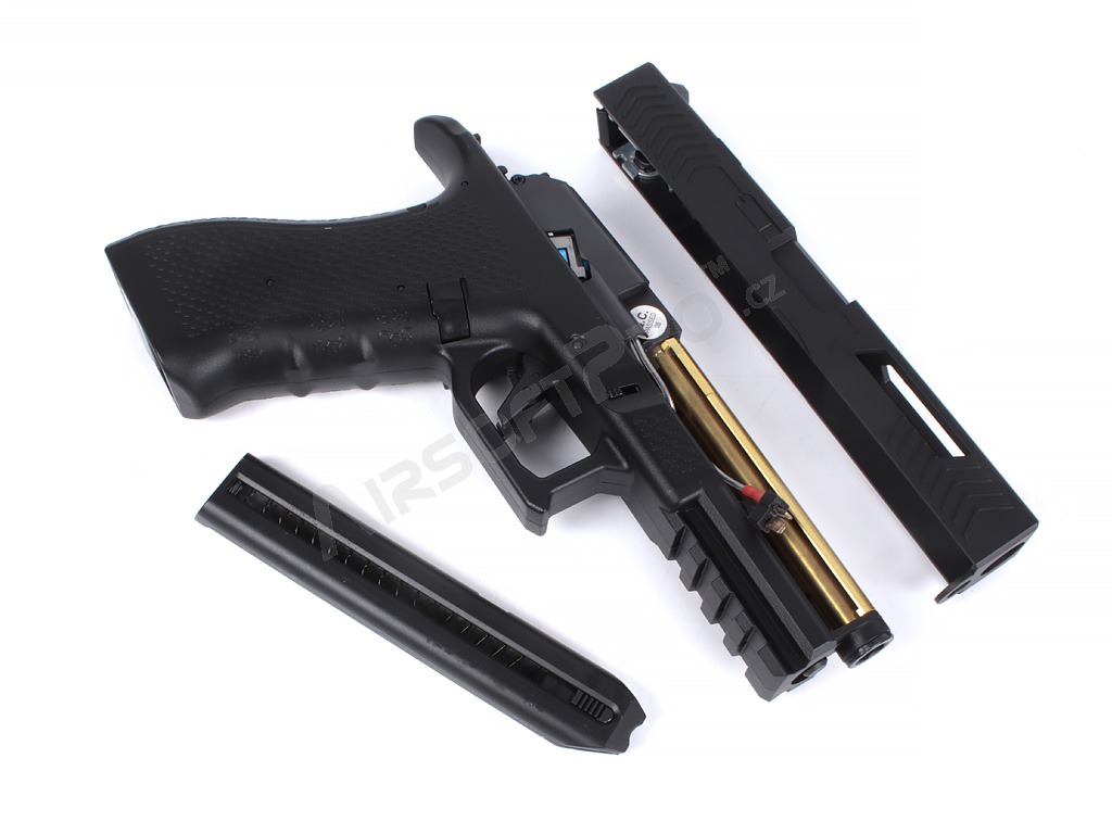 O mică baterie Li-Po este amplasată sub glisieră pentru a alimenta mecanismul intern. Acest lucru conferă pistolului un corp compact și bine echilibrat; încărcătorul este special îngust, astfel încât totul să încapă confortabil în cadrul pistolului. Piesele din plastic sunt din polimer durabil, iar componentele interne cheie sunt din metal.