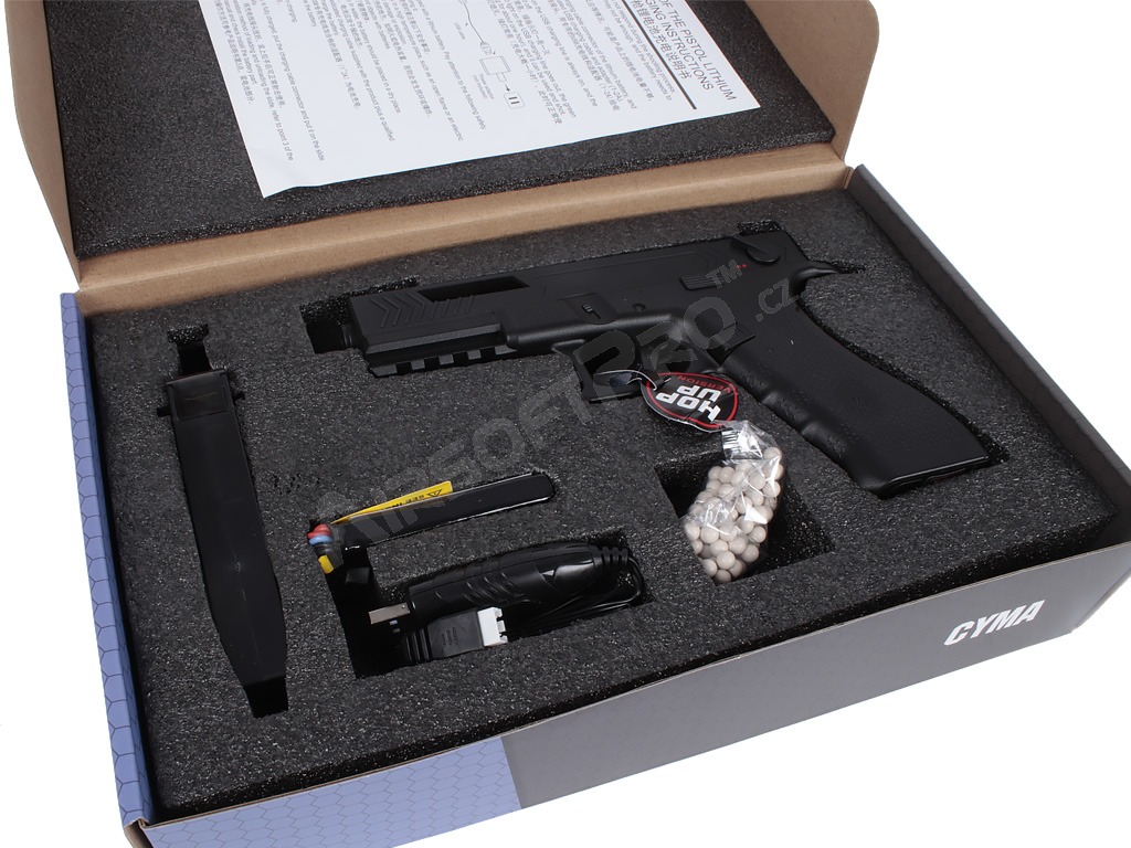 CYMA CM.131S AEP Mosfet Edition este un pistol electric (AEP) care reprezintă o alternativă excelentă la pistoalele manuale și cu gaz. Acesta combină ușurința în utilizare și fiabilitatea unei unități electrice cu capacitatea de a trage pe loturi - ideal pentru instruire și desfășurarea de acțiuni rapide, dar independent de temperatura exterioară.