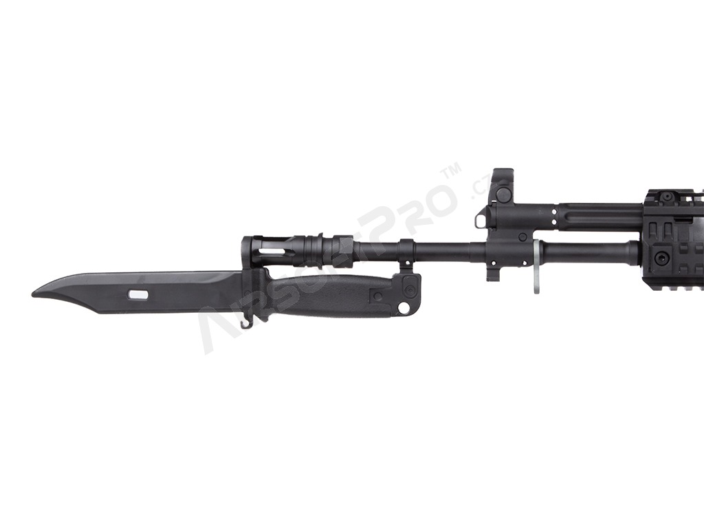 Replică sigură și realistă din cauciuc a baionetei AK74/SVD, ideală pentru cei care construiesc echipamente rusești de airsoft. Poate fi montat pe țeava armei pentru efect, prins la echipament ca un accesoriu elegant sau folosit într-un contact "ucidere cu cuțitul".
