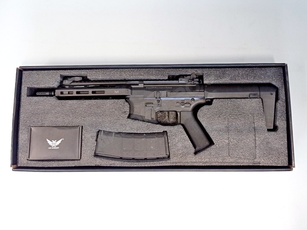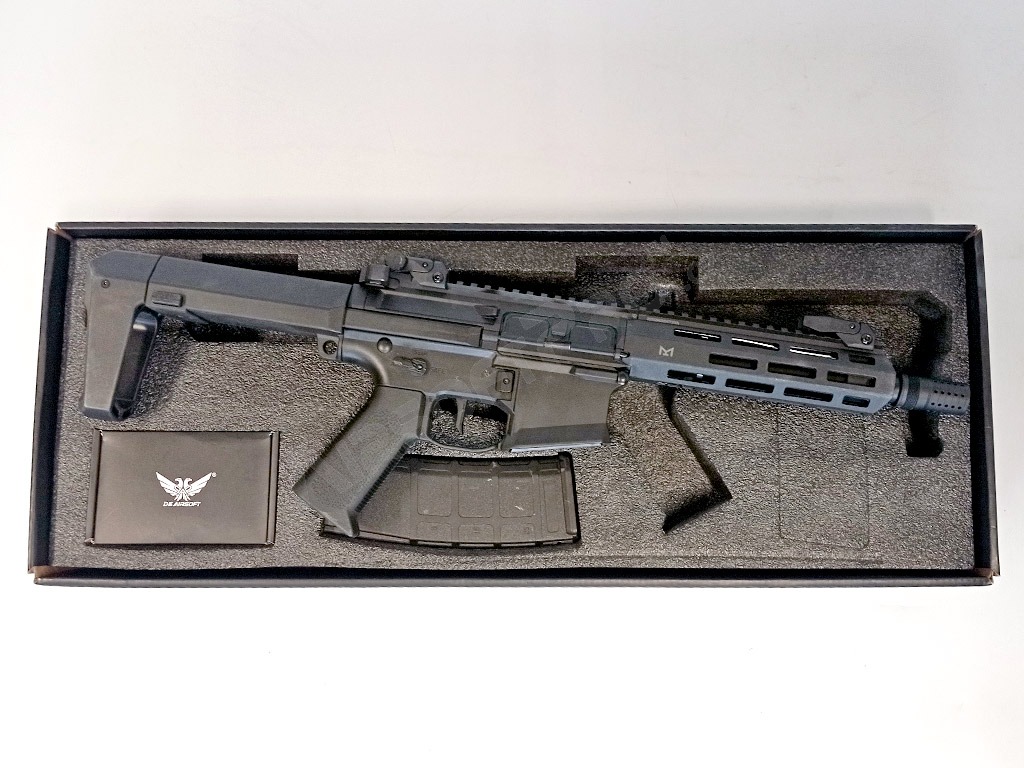 Replica modernă a armei de tip AR-15 în stilul "Honey Badger" de la Double Eagle. Arma oferă o manoperă de calitate a corpului și a părților externe, în interiorul mechabox se află o unitate de procesare FALCON cu funcții reglabile, care are și un mosfet în ea. În caz de supratensiune sau tensiune scăzută, motorul emite o vibrație de avertizare.
