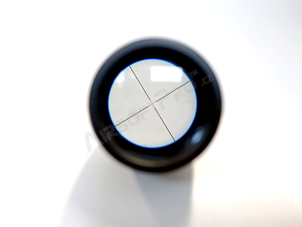 Optică durabilă complet metalică cu diametru de 40 mm și mărire 3x-9x. Capace pentru lentile incluse. Inele de montare înalte de 25mm SUNT incluse. Riflescope poate fi montat pe orice șine de montare standard de 22m.