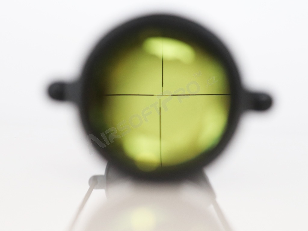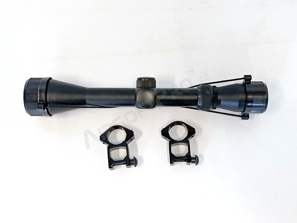 Optică durabilă complet metalică cu diametru de 40 mm și mărire 3x-9x. Capace pentru lentile incluse. Inele de montare înalte de 25mm ARE incluse. Riflescope poate fi montat pe orice șine de montare standard de 22m.