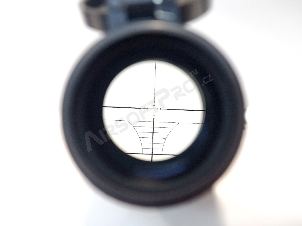 Ochelari de pușcă Snow Wolf de calitate, din metal, cu optică clară, cu reticul de tip MIL-Dot și reglare zoom (3x până la 9x continuu). Datorită iluminării crosshairs-ului (roșu), acesta poate fi utilizat și pentru fotografiere în condiții de vizibilitate redusă. Rețelele transversale pot fi ajustate infinit pe orizontală și verticală. Luneta este alimentată de o baterie CR2032 (inclusă). De asemenea, sunt incluse capace de protecție articulate atractive și inele de montare înalte cu un diametru de aproximativ 25 mm. Acestea pot fi atașate la șinele RIS convenționale. Astfel, pe marea majoritate a armelor.