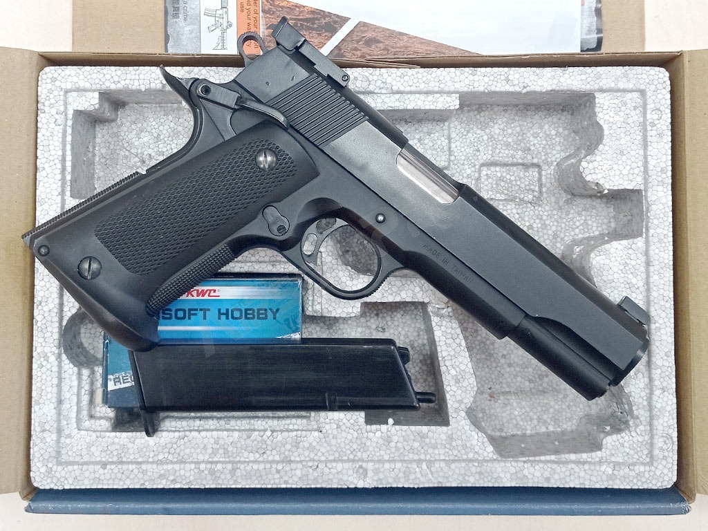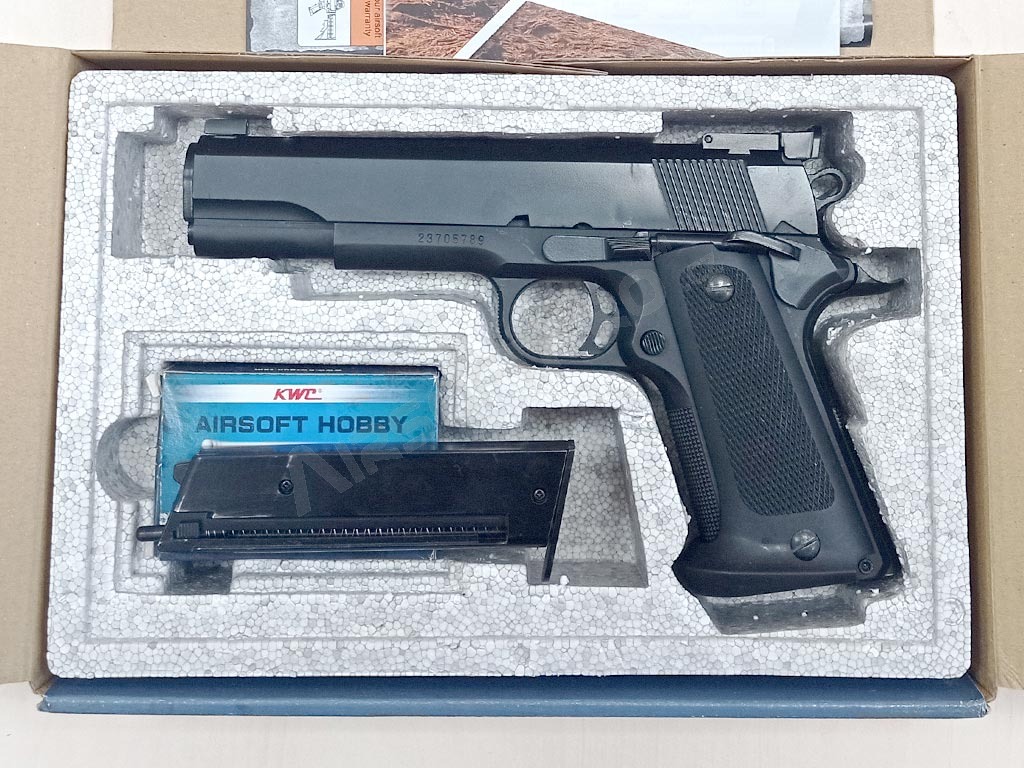 Pistol manual M1911 de la compania taiwaneză KWC. Replica 1:1. Este un pistol manual fiabil care este fabricat din plastic ABS durabil. Piesele metalice și încărcătorul sunt metalice. În interiorul pistolului sunt inserate greutăți care măresc greutatea și realismul armei. Potrivit pentru începători.