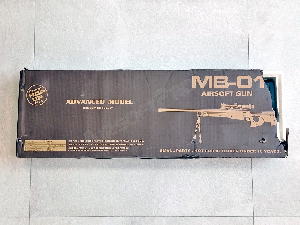 Pușcă de lunetist manuală foarte puternică Well MB01C. MB0101 este o armă MBM01 MBM foarte puternică, cu o performanță medie de 135 - 140 m/s (până la 450 FPS).