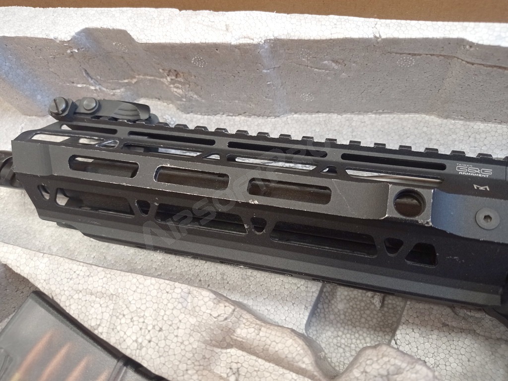 Ca și alte arme de la G&G, aceasta oferă, de asemenea, o manoperă exterioară excelentă. Arma este, desigur, complet metalică, cu un finisaj hilar și o turnare excelentă. Corpul masiv impresionează, la fel ca și antebrațul practic M-LOK, a cărui lejeritate asigură un echilibru decent al armei și de la capătul căruia trage cu ochiul un compensator elegant.
