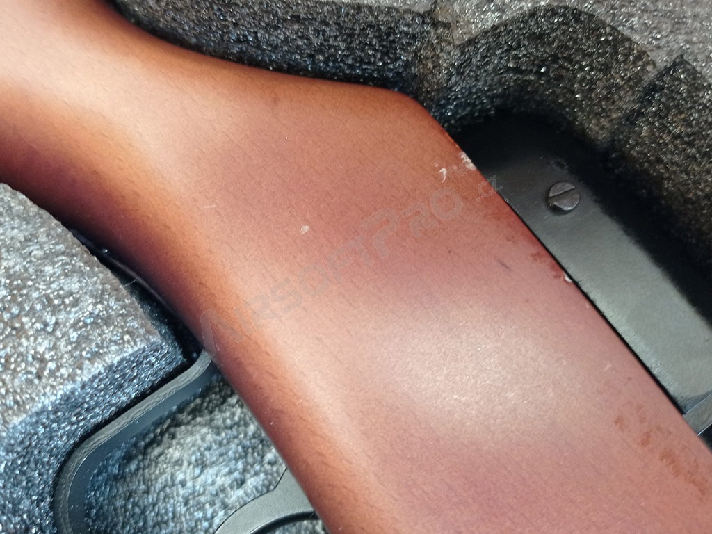 Acest clasic printre armele celui de-al Doilea Război Mondial nu are nevoie de o lungă prezentare. PPSh sau "Spagin" a fost o armă tipică Armatei Roșii. Această replică este realizată după modelul său real în întregime din metal și lemn adevărat. De asemenea, are un blowback electric care mișcă nu numai maneta de armare a culii, ci și fereastra de ejecție a culii atunci când se trage. Pistolul are lemn foarte bine lucrat și un corp ștanțat realist.