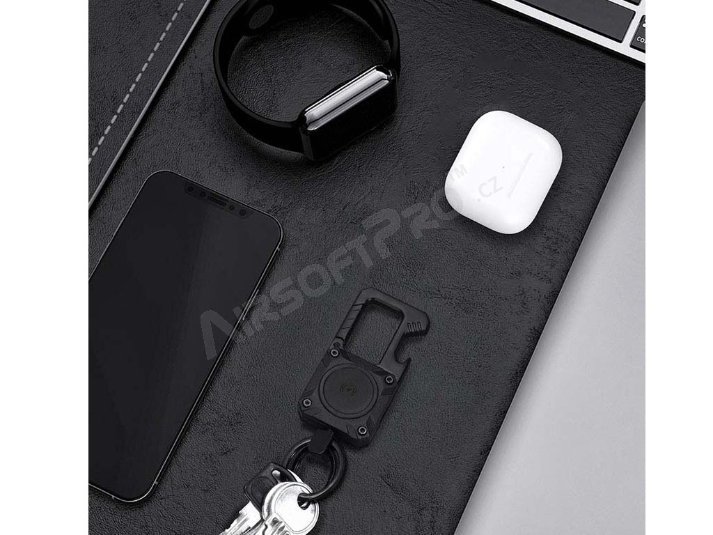 Cu acest breloc metalic elegant, veți avea întotdeauna cheile, rucsacul sau alte obiecte de valoare sub control în siguranță. Brelocul combină un localizator Bluetooth compatibil cu Apple Find My și un deschizător de sticle la îndemână. Stil, siguranță și funcționalitate, toate la un loc!