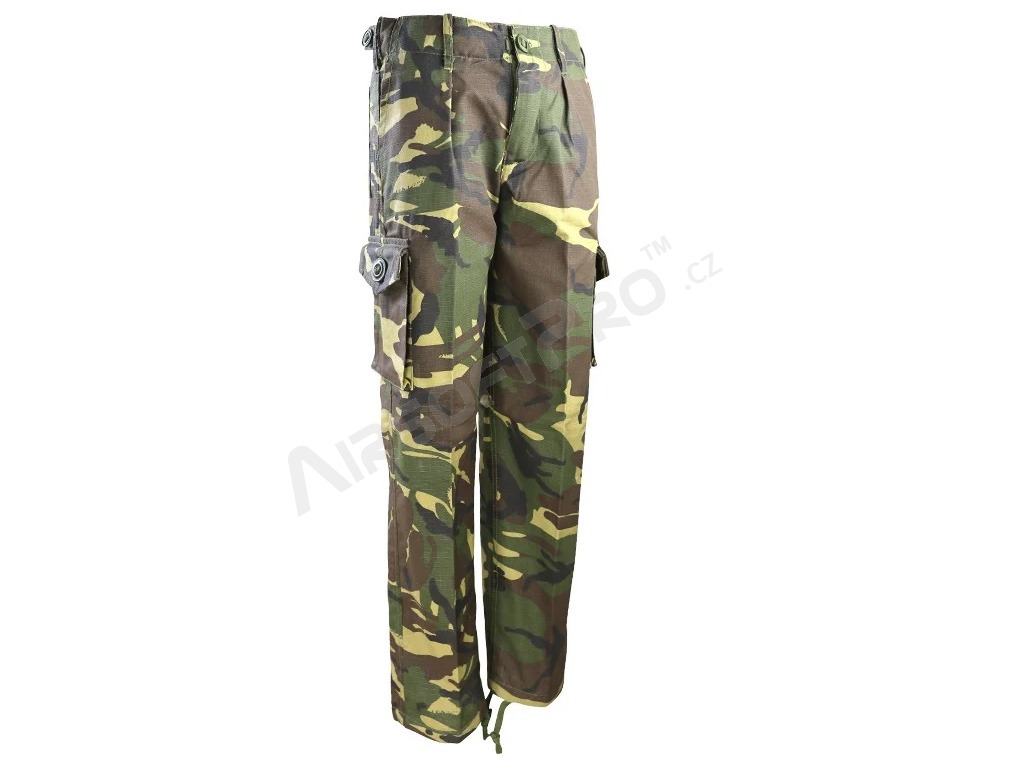 Pantaloni pentru copii cu închidere cu fermoar, șezut și genunchi întăriți și 6 buzunare. Buzunarele sunt de tip British Army S95, iar pantalonii sunt confecționați din 65 %/35 % bumbac ripstop. Pantalonii sunt excelenți pentru copiii care vor să se joace afară și sunt ușor de curățat.