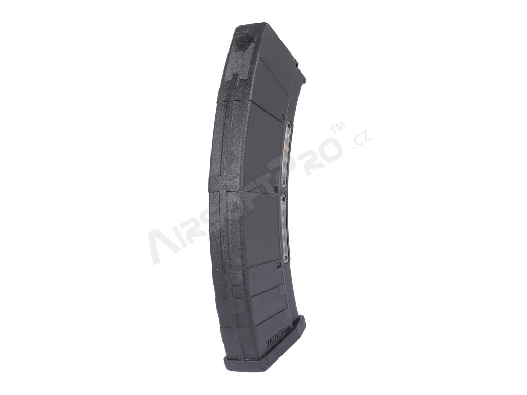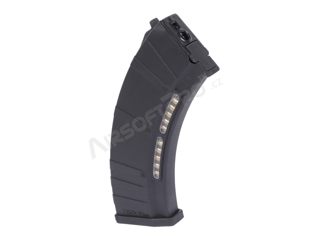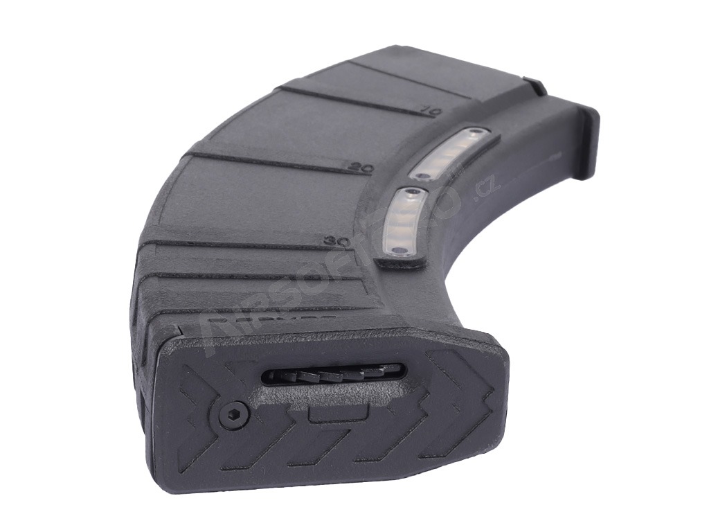 Forma ergonomică asigură o prindere sigură la reîncărcare. Potrivit pentru marea majoritate a AK-urilor electrice airsoft. Este fabricat din plastic durabil cu spațiu liber pentru cartușe de imitație.