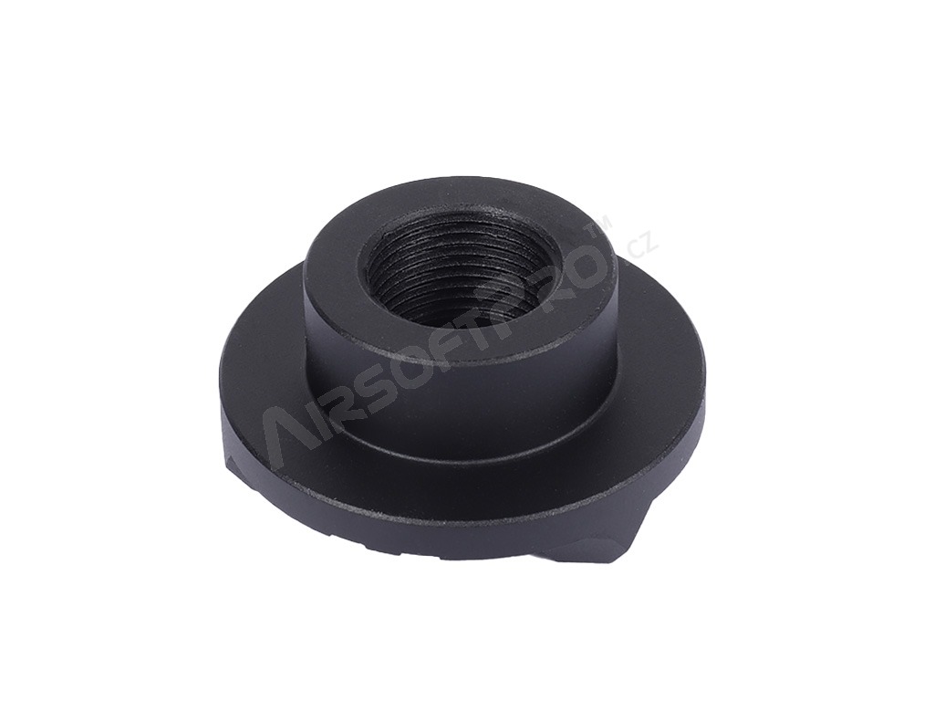 Orificiul intern este prevăzut cu un filet standard de 14 mm stânga (CCW) pentru a permite instalarea directă pe țeavă. Este ideal pentru cei care preferă cele mai compacte dimensiuni ale armei fără un amortizor proeminent.
