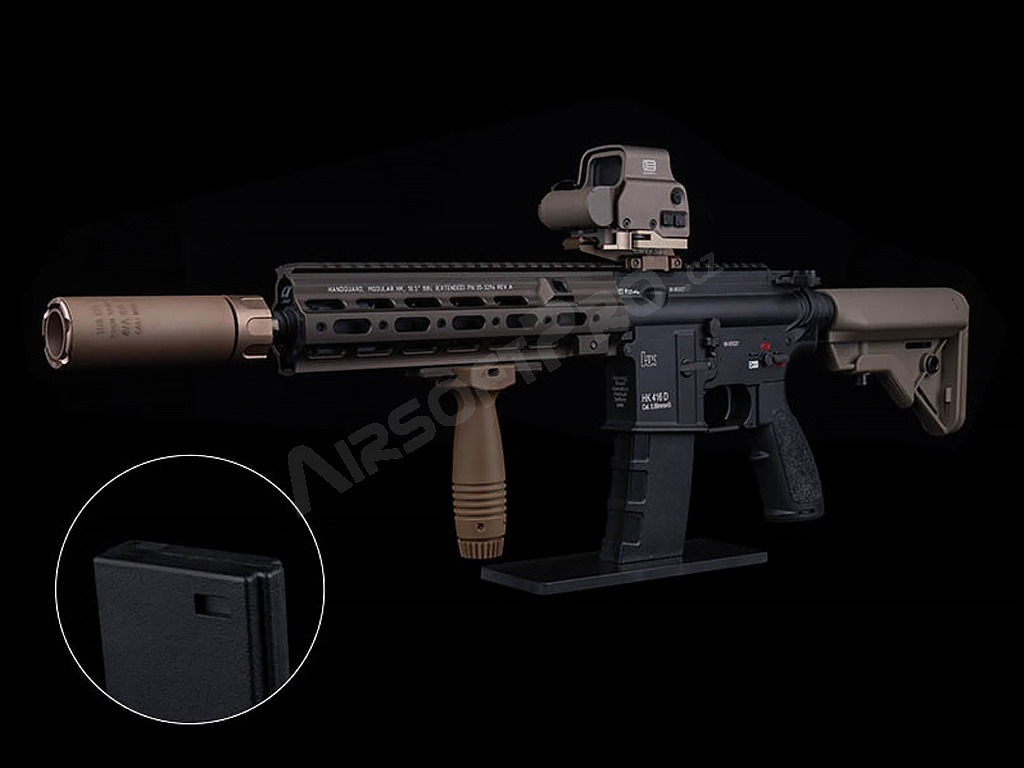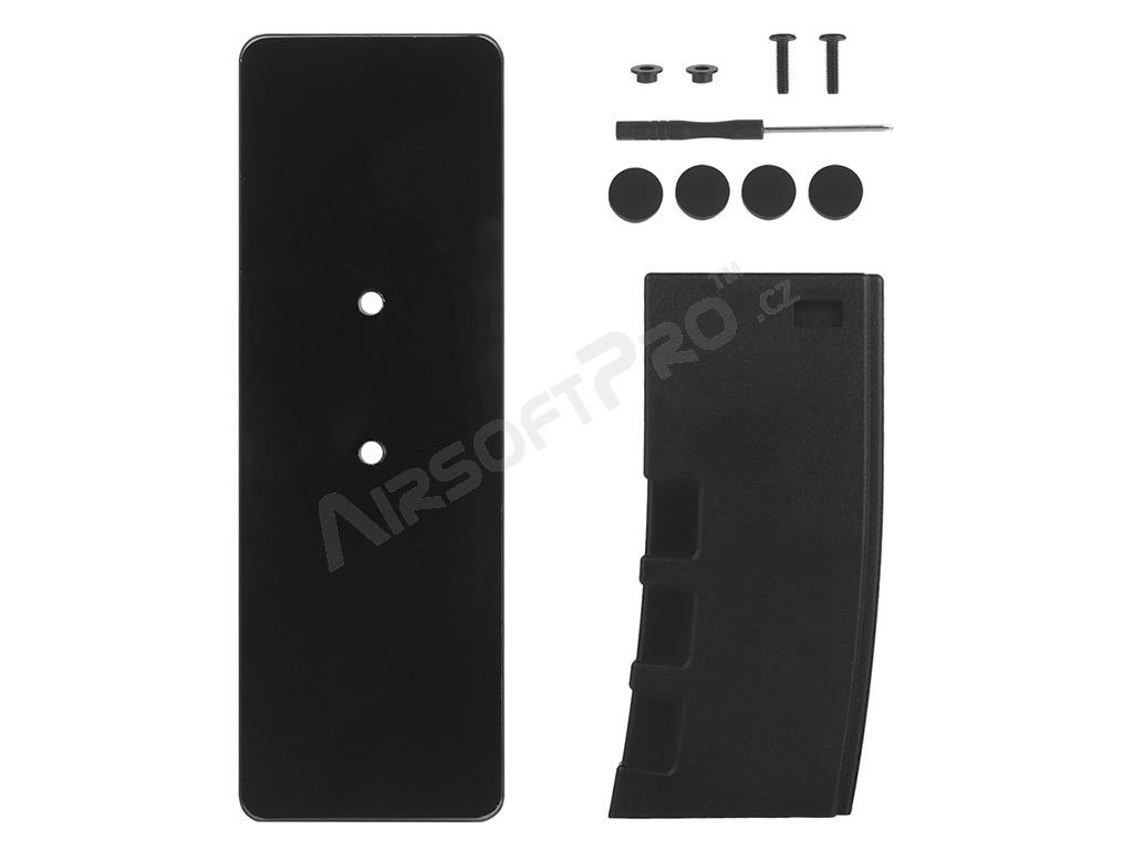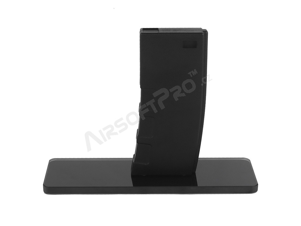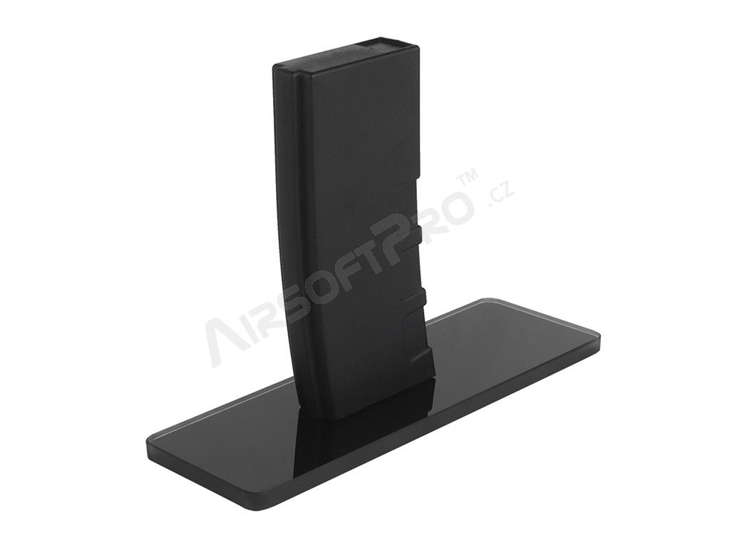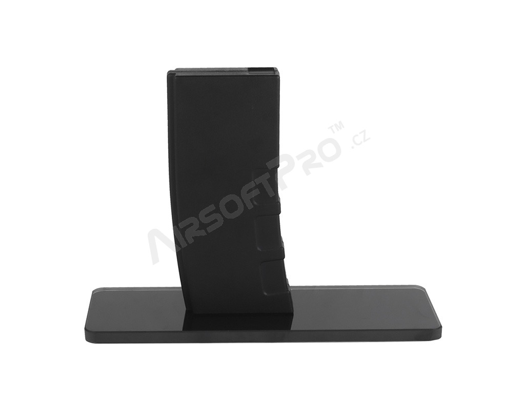 Datorită atașării prin intermediul dispozitivului de eliberare a încărcătorului, arma poate fi introdusă și fixată în suport în același mod ca un încărcător obișnuit. De asemenea, baza din sticlă accentuează elegant aspectul armei expuse. Corpul suportului pentru încărcătoare este fabricat din plastic ABS, în timp ce baza este fabricată din sticlă pentru un efect vizual maxim.