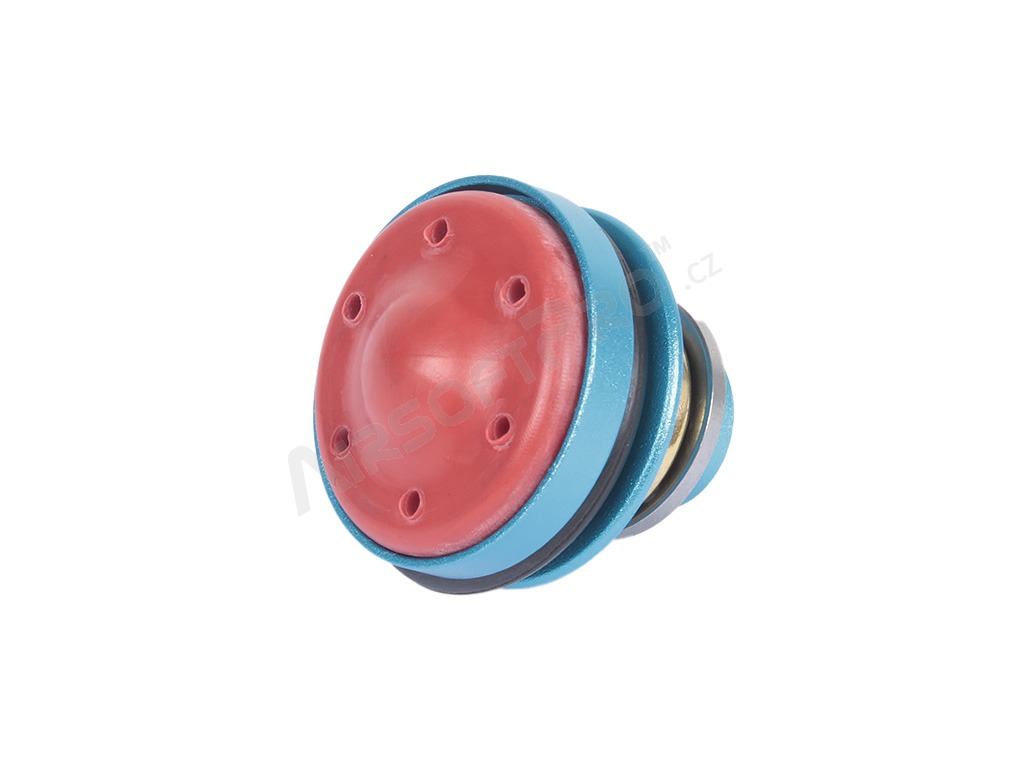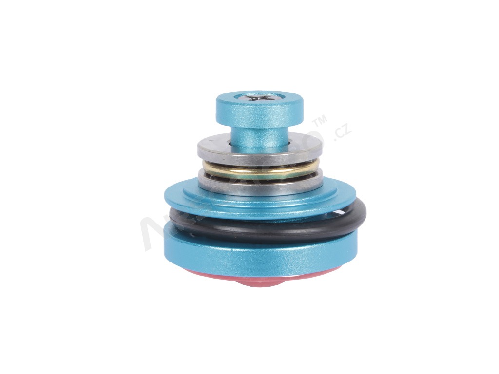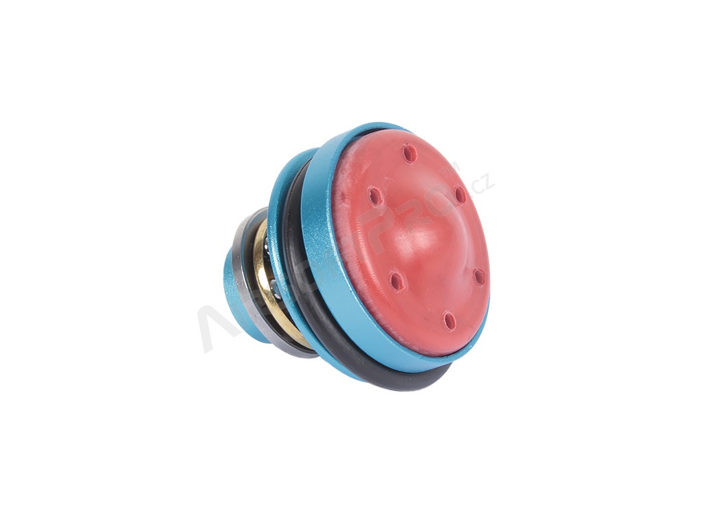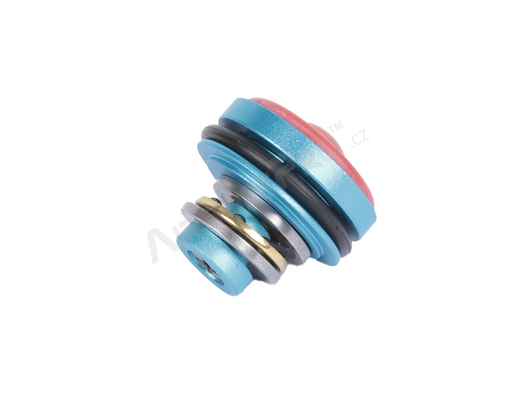 Cap de piston din aluminiu cu funcție anti-presiune și rulment, conceput pentru modernizarea armelor airsoft. Datorită prelucrării CNC oferă dimensiuni precise și durabilitate mai mare în comparație cu piesele standard din plastic (14 g).