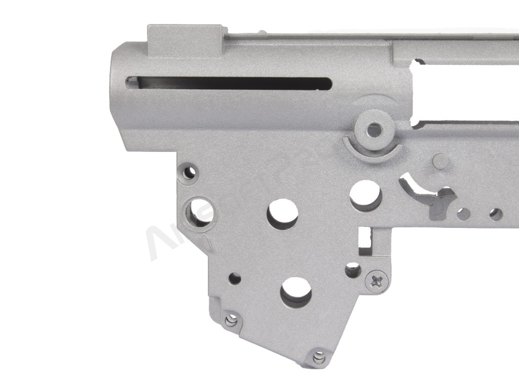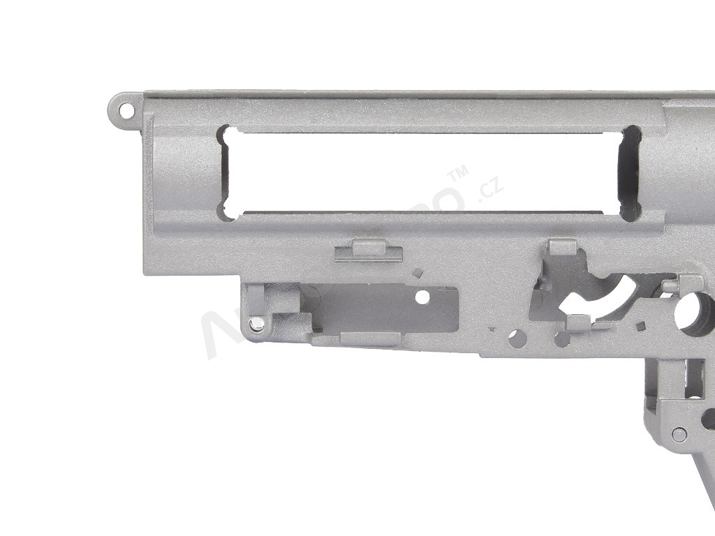 Schelet de mechabox tip 3 cu arc de schimbare rapidă utilizabil pentru toate armele cu mechabox tip 3. (Deci AK, G36, AUG etc.) Parte originală CYMA. Corpul mechabox este pentru rulmenți de 8 mm. Acestea nu sunt incluse. Pachetul include șuruburi.
