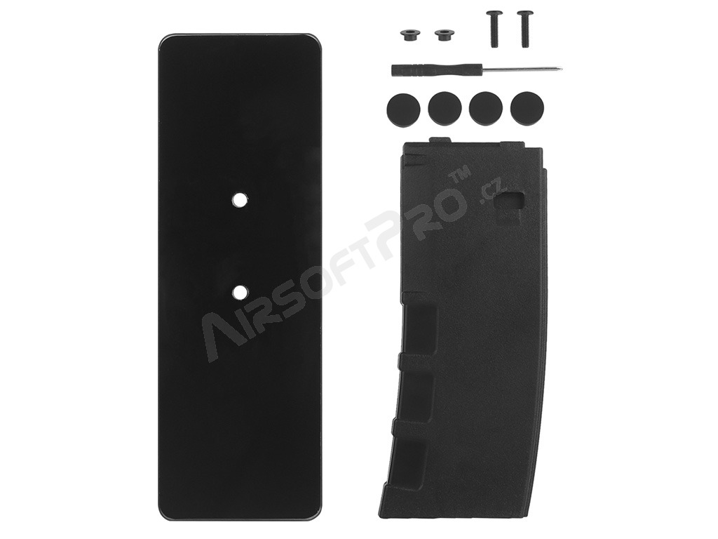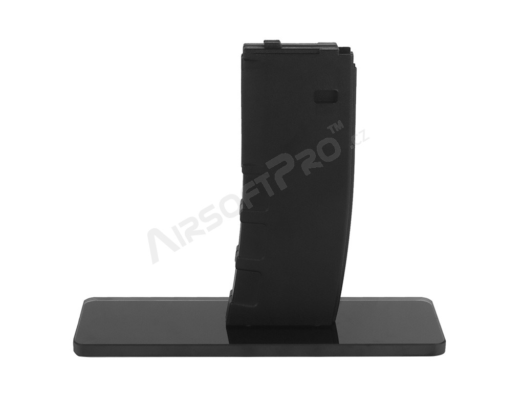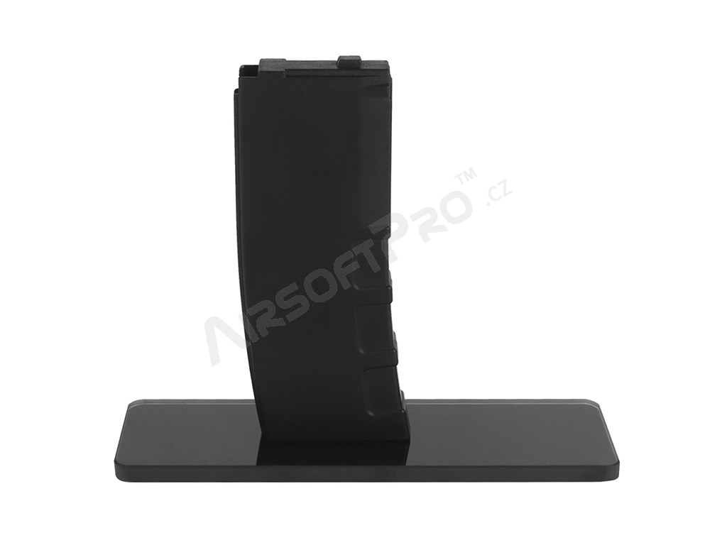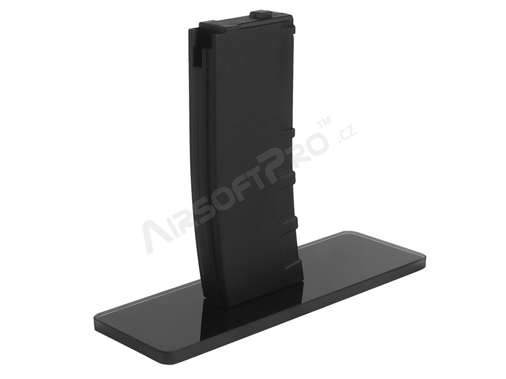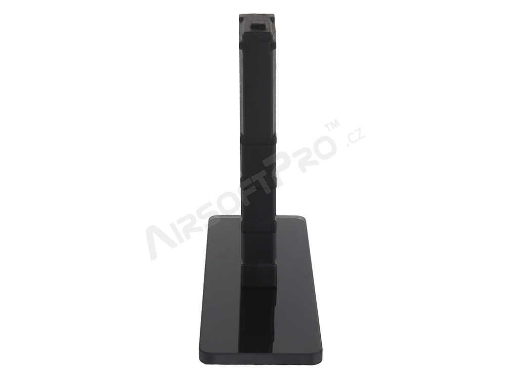 Datorită atașării prin intermediul dispozitivului de eliberare a încărcătorului, arma poate fi introdusă și fixată în suport în același mod ca un încărcător obișnuit. În plus, baza din sticlă accentuează elegant aspectul armei expuse. Corpul suportului pentru încărcătoare este fabricat din plastic ABS, în timp ce baza este fabricată din sticlă pentru un efect vizual maxim.