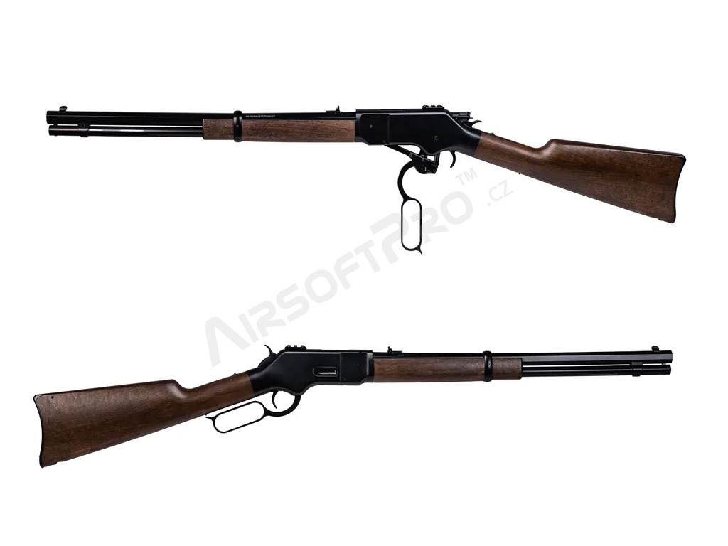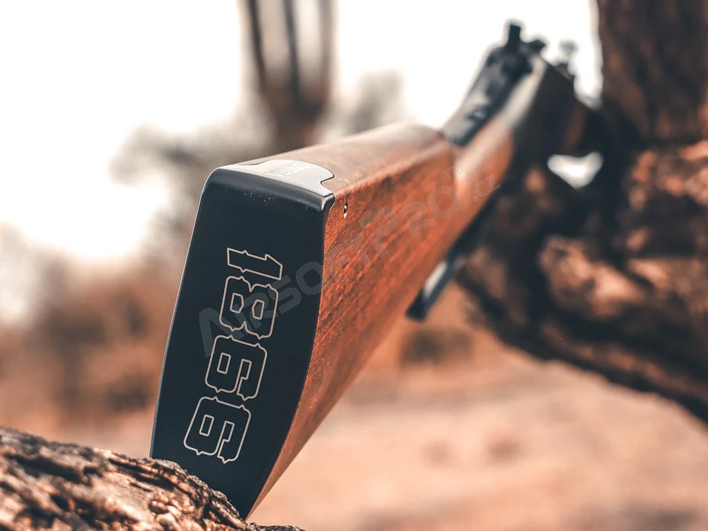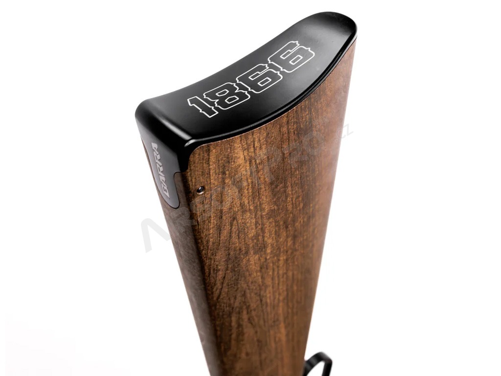 Modelul 1866 oferă o combinație de autenticitate istorică și performanță modernă. Alimentată de două bombe CO2 amplasate discret în cizmă, această pușcă oferă posibilitatea de a trage până la 10 cartușe/rotund cu un ciclism realist al manetei. Încărcați peleții în cartușe metalice reutilizabile și introduceți-le în camera puștii. După fiecare tragere, pârghia ejectează cartușul folosit și îl încarcă pe următorul, imitând funcția unei puști reale cu mecanism cu pârghie.