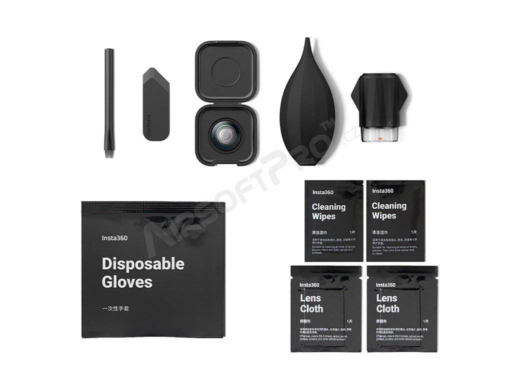 Include o lentilă de înlocuire originală, instrumente de înlocuire și de curățare (de exemplu, instrument de prindere, suflantă, cârpe, perie, mănuși și husă).