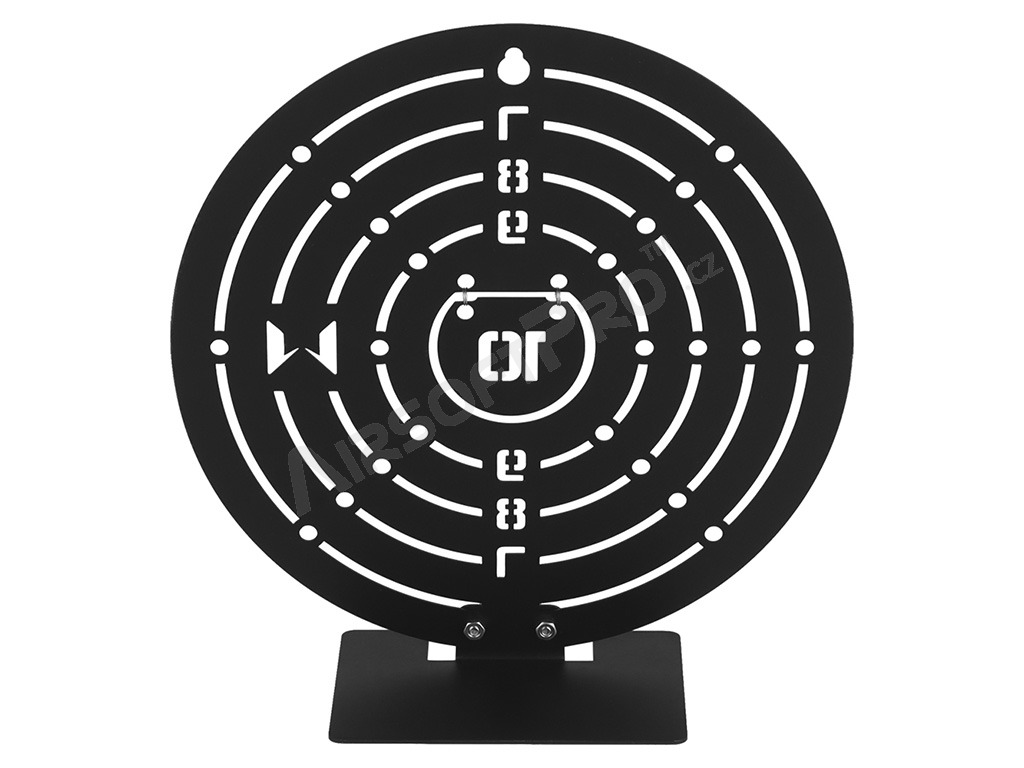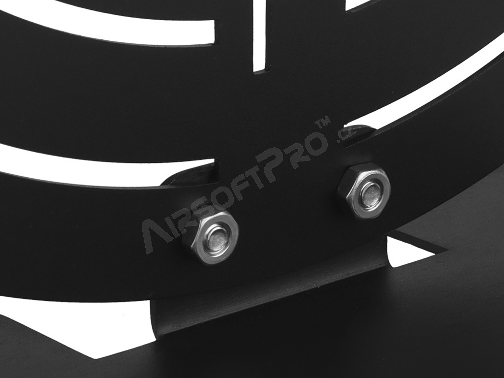 Ținta, precum și baza, sunt tăiate cu laser din tablă de oțel de 1,5 mm cu finisaj negru. Ținta are margini prelucrate pentru o manipulare sigură.