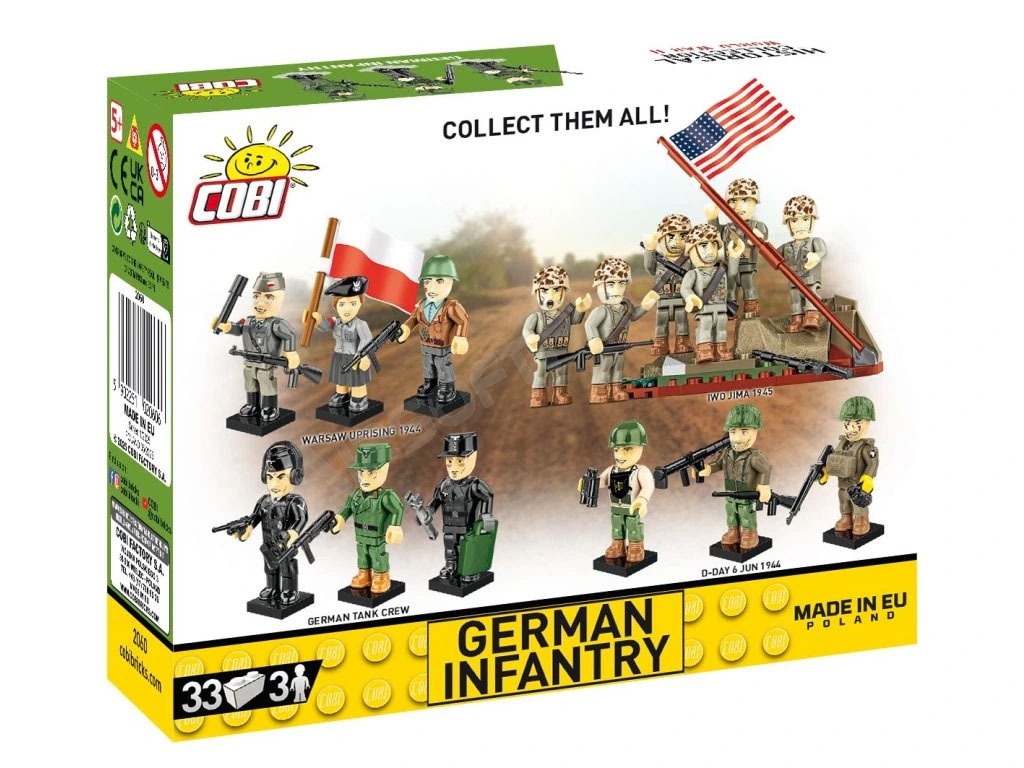 Setul de figuri include două figuri realiste de infanterie germană și o figură de vânător de munte din al Doilea Război Mondial.