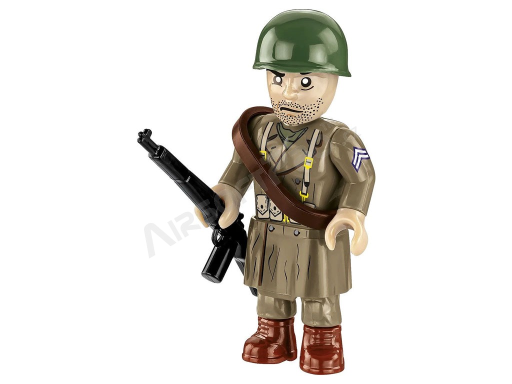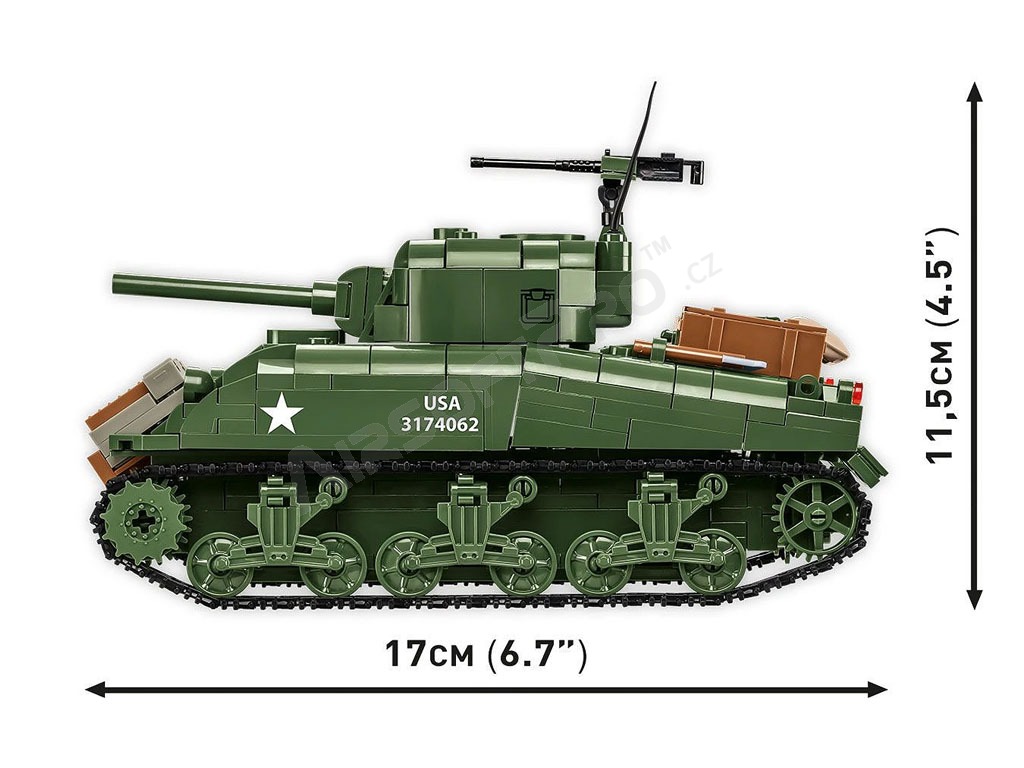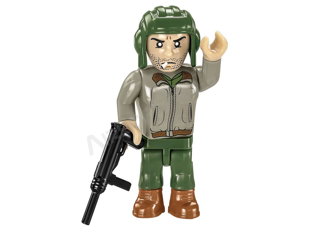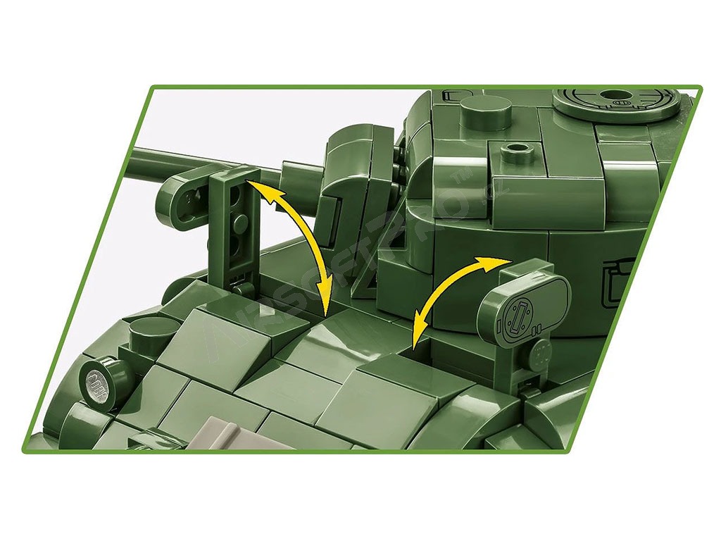 M4 Sherman a fost tancul mediu american de bază produs în timpul celui de-al Doilea Război Mondial. Acest kit COBI este proiectat cu atenție la scara 1:35 și constă din 663 de cărămizi. Tancul are șine funcționale, o turelă rotativă, un tun mobil, o trapă de deschidere și un capac de serviciu cu un motor fals în interior. Setul include două figuri - un tanchist american cu cască și mitralieră M3 "Grease Gun" și un infanterist îmbrăcat într-o haină călduroasă cu pușcă M1 Garand. Acesta este completat cu elemente de mediu: o secțiune de gard cu un gard de tufișuri, care dă setului atmosfera unui câmp de luptă. Impresiile de pe modele sunt de foarte bună calitate, realiste și surprind cu acuratețe marcajele tancurilor și detaliile uniformelor.
