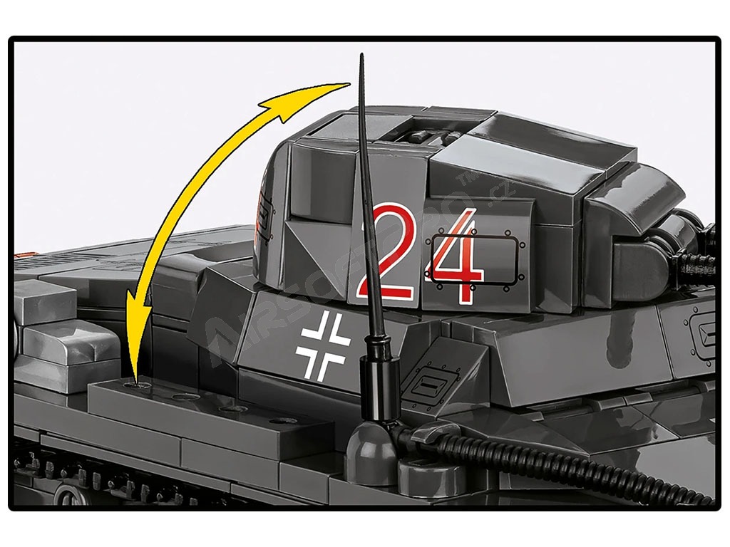 - Turela se rotește la 360° și țeava tunului își schimbă unghiul, permițând modelului să fie plasat într-o varietate de poziții realiste.